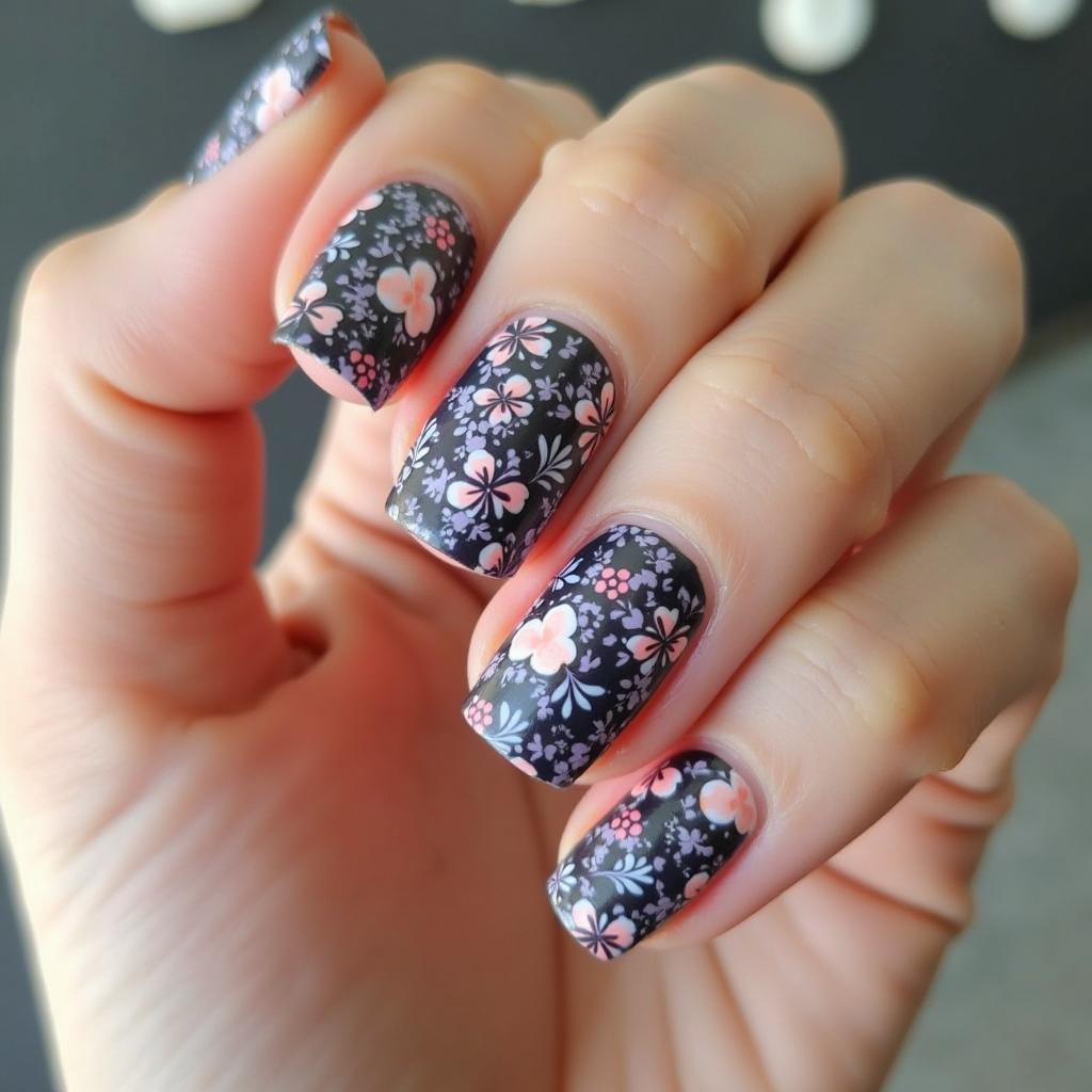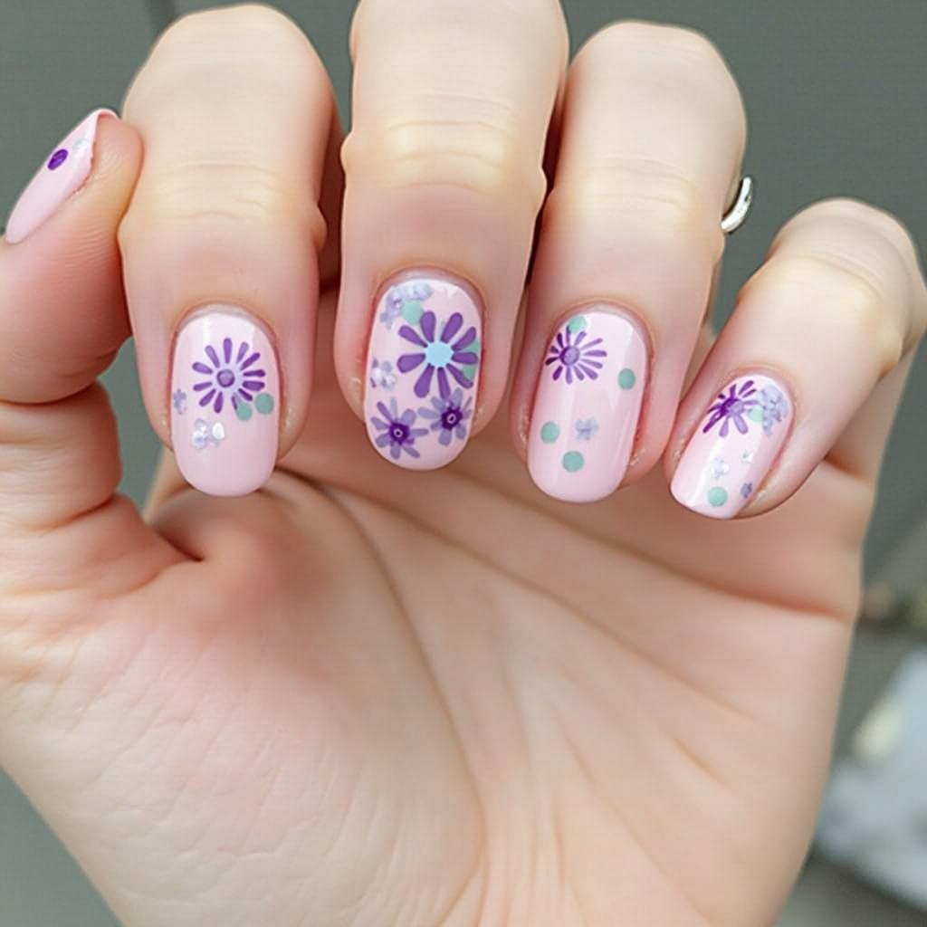 Blend soft pinks and purples for a watercolor effect, and add delicate flower designs to your nails for an ethereal look.