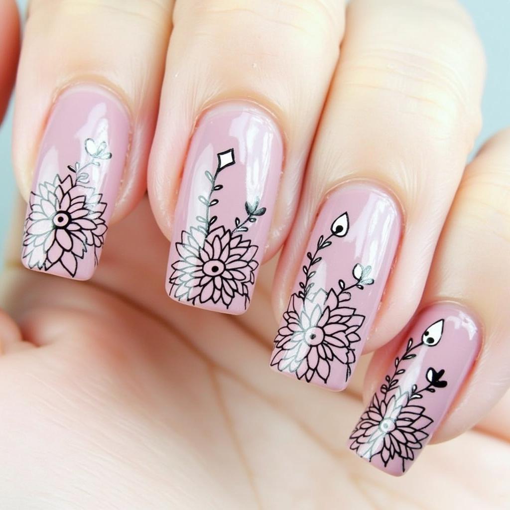 Stamping is a great way to create intricate floral designs quickly and easily.