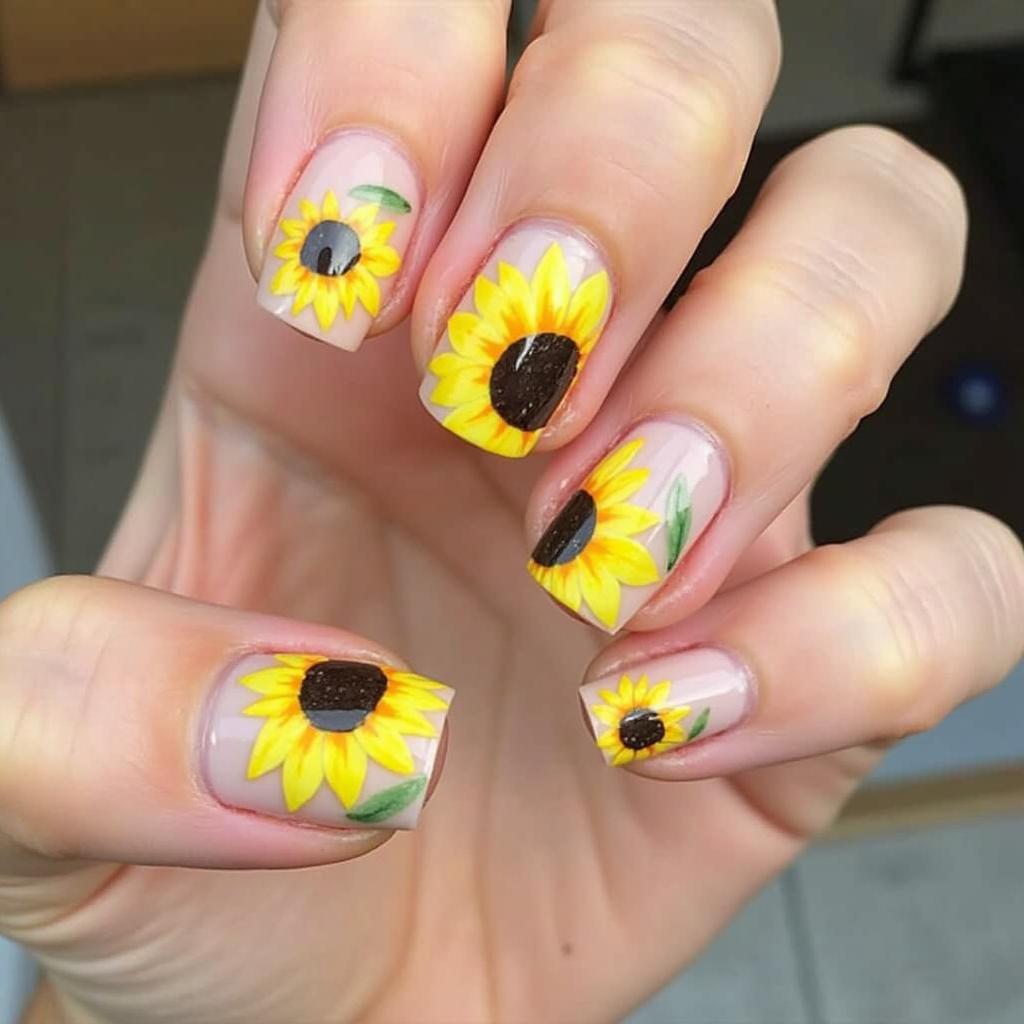 Sunflowers are bright, bold, and full of life, making them an ideal choice for a spring manicure.