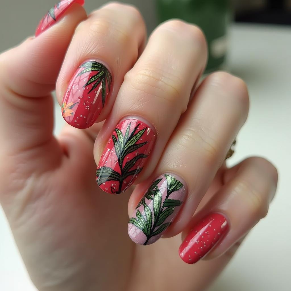 5. Tropical Floral Nails