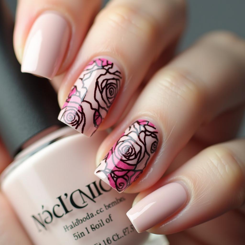Stamp detailed rose designs onto your nails in colors like red, pink, or gold for an elegant, classic look.