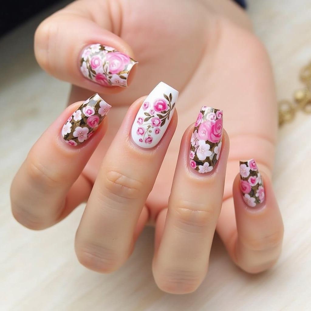 9. Vintage Floral Nails