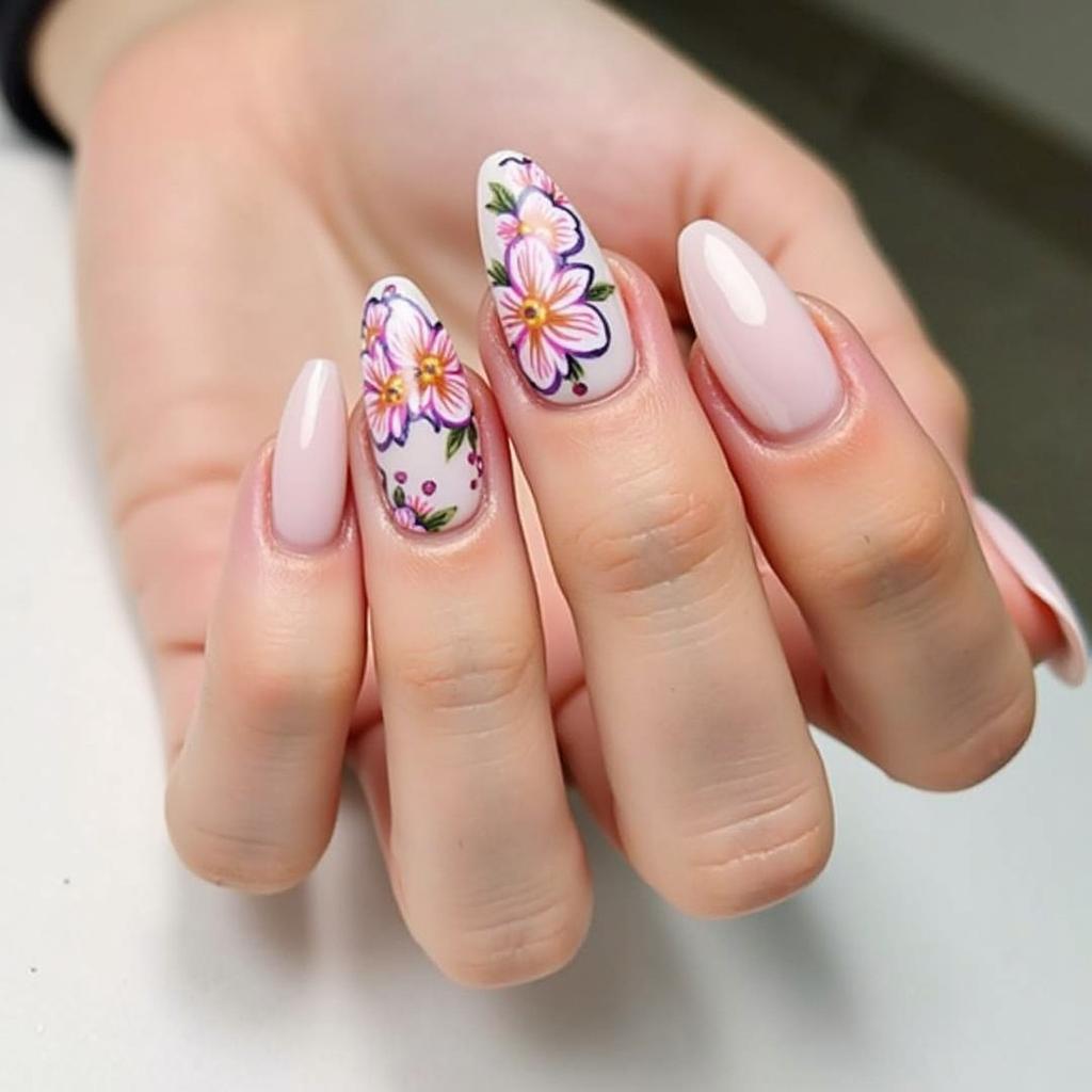 If you love floral designs but want a more subtle look, accent nails are the perfect choice.