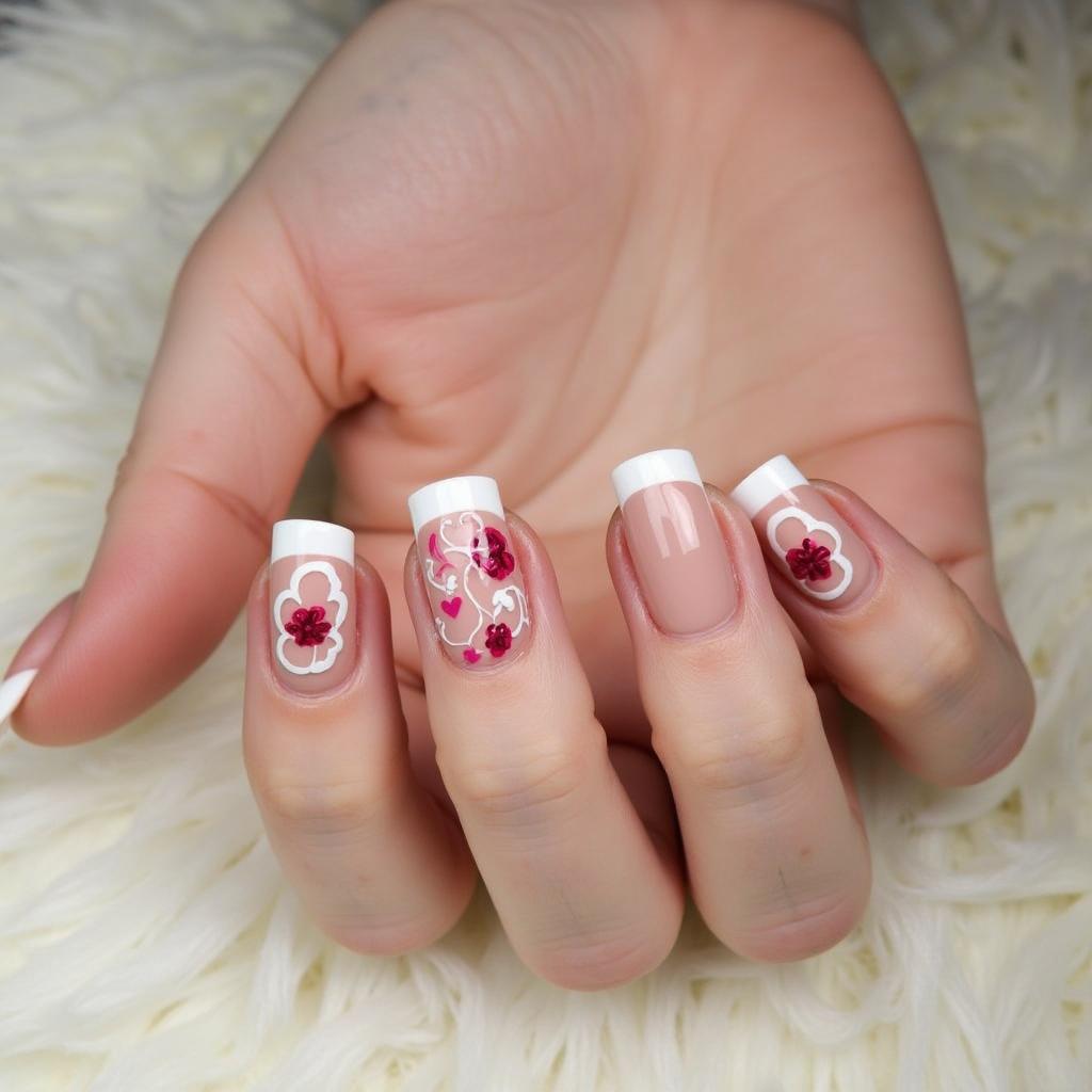 Add a floral touch to a classic French manicure by incorporating flowers into the tips of your nails.