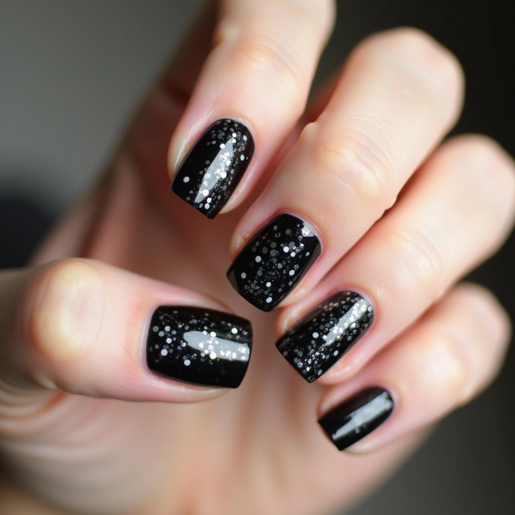 14. Black Nails with Silver Glitter Dots