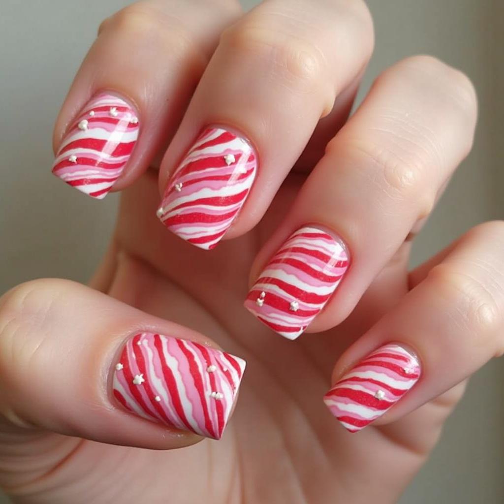 Switch up the classic red and white candy cane stripes by incorporating pink stripes. The soft pink adds a unique touch, making the design both cute and festive. This is perfect for those who love playful designs.