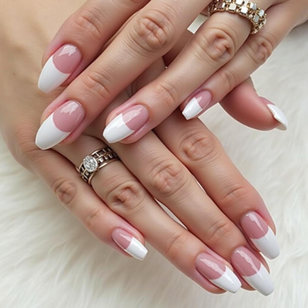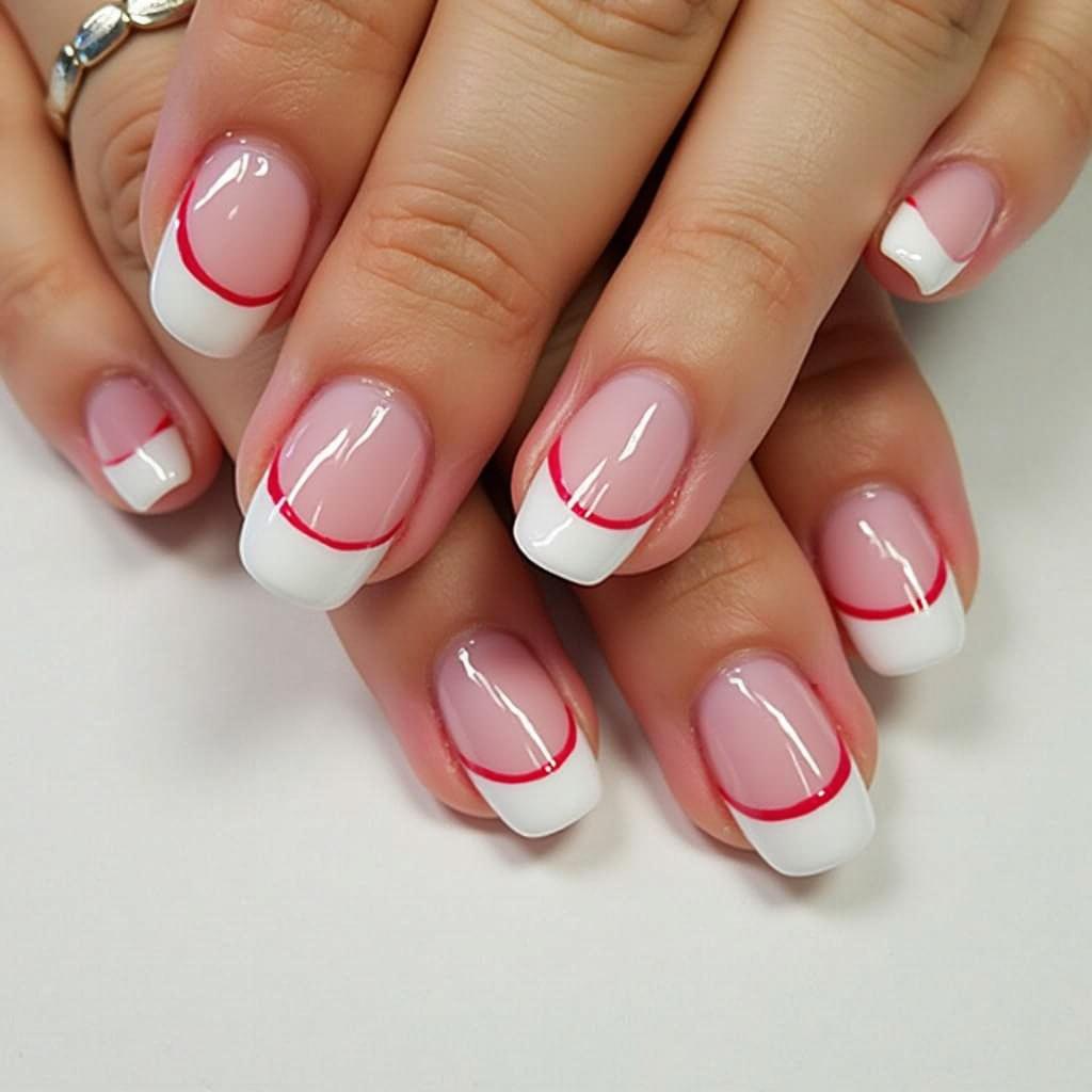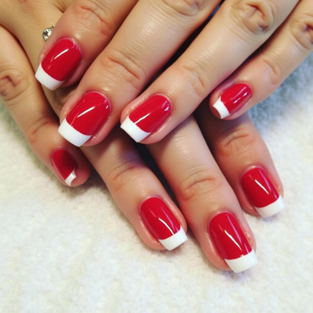 Go for a classic red almond base with crisp white tips for a sleek, sophisticated design. This twist on the French tip style offers a simple, yet festive manicure that’s perfect for any holiday occasion.