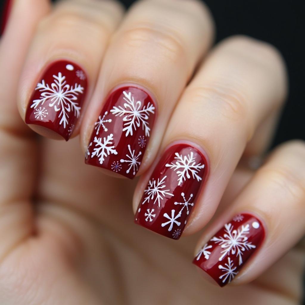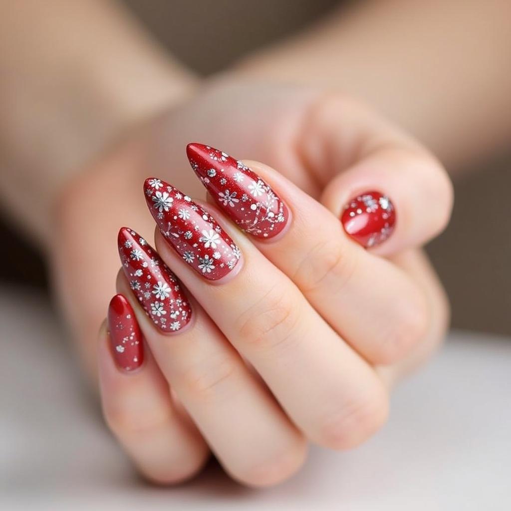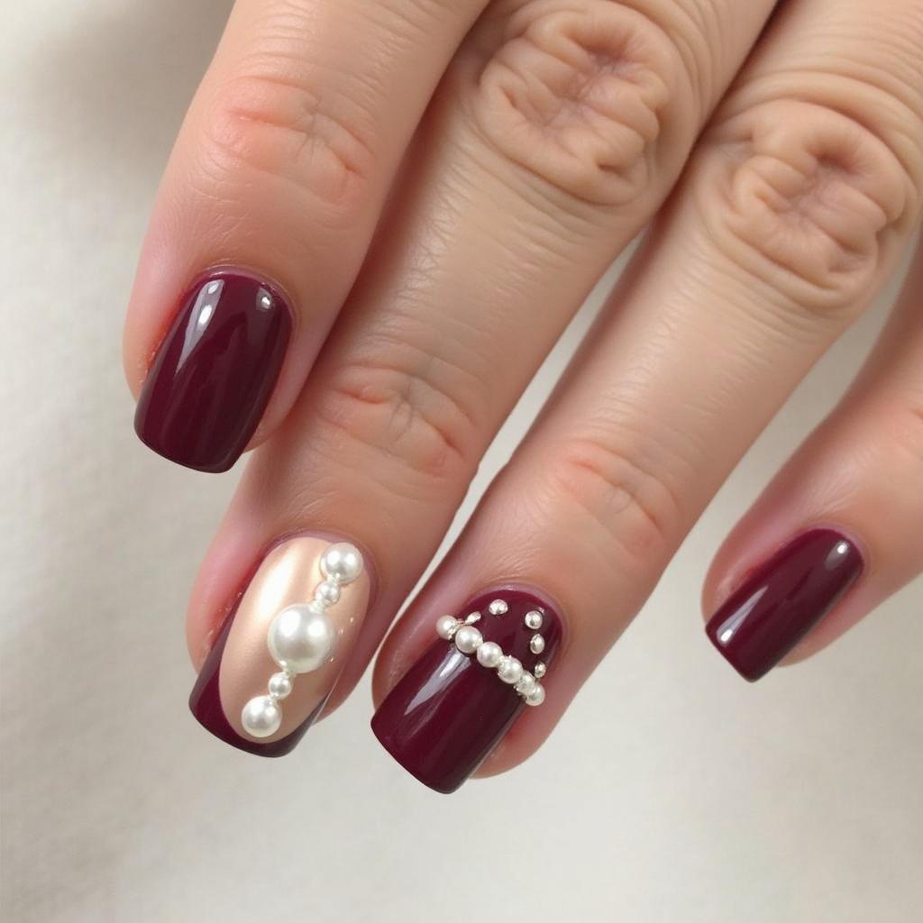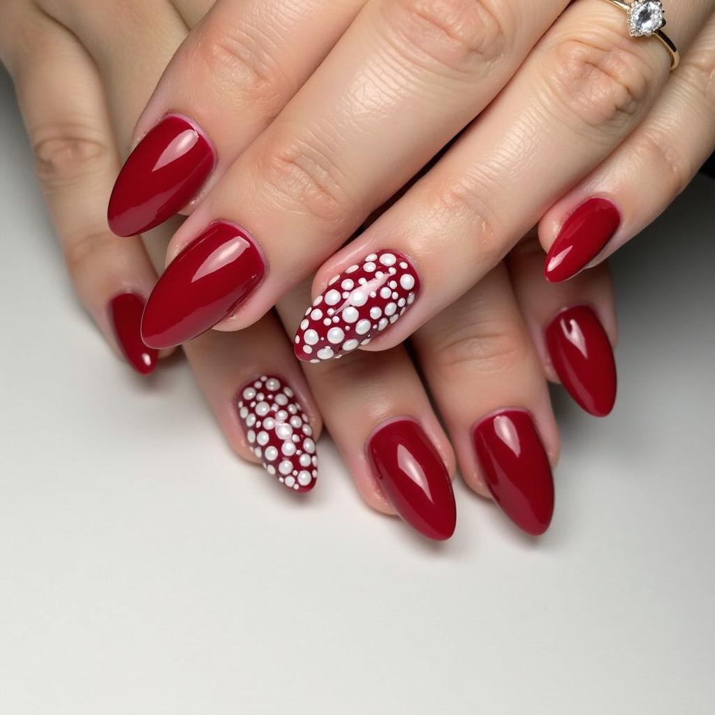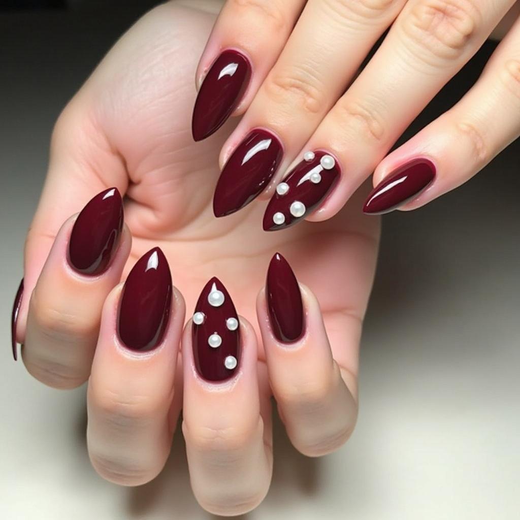 Burgundy is a rich, sophisticated color for Christmas. Combine it with pearl accents on almond nails to create a refined, luxurious look. The pearls add dimension and elegance, making your nails the perfect accessory for holiday events.