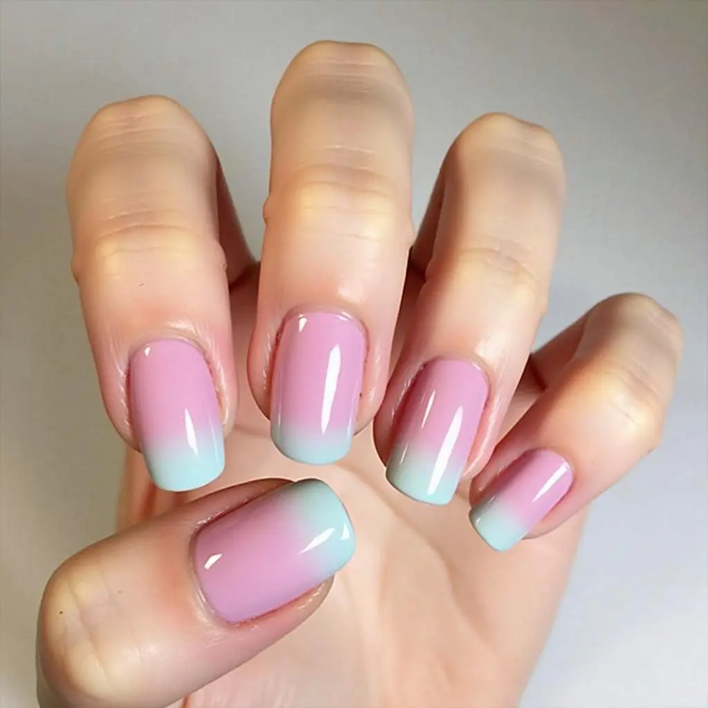 Start with mint green and fade into aqua blue for a fresh, cool ombre effect that captures the spring vibe.