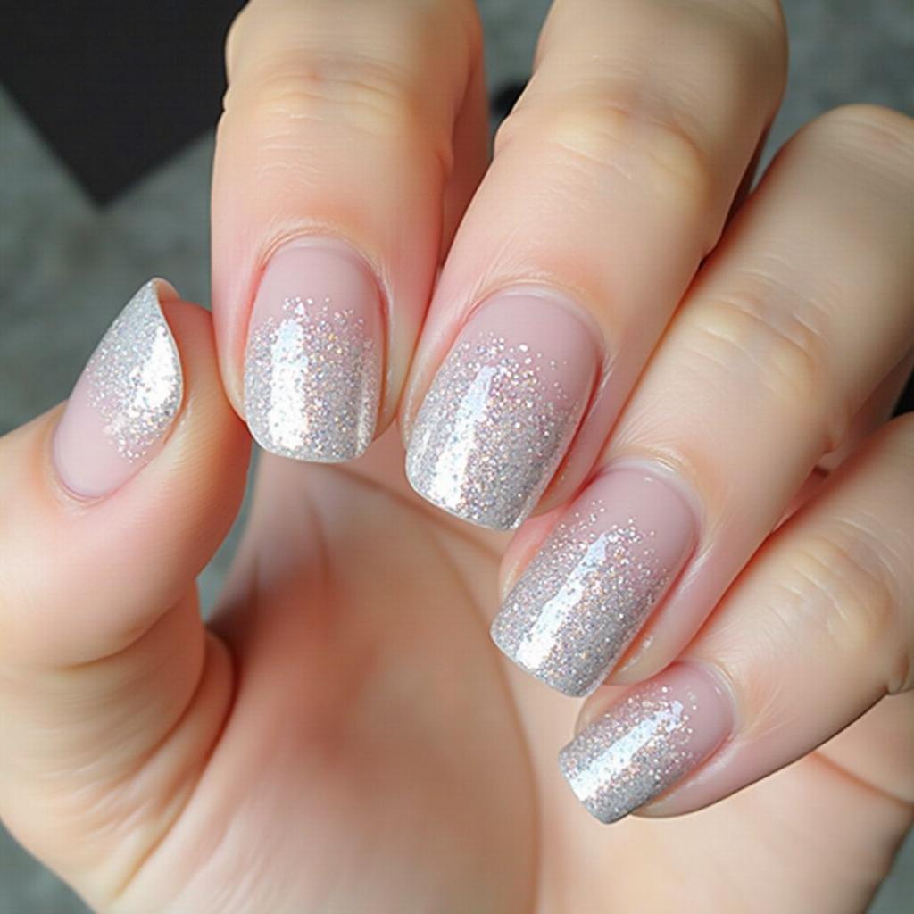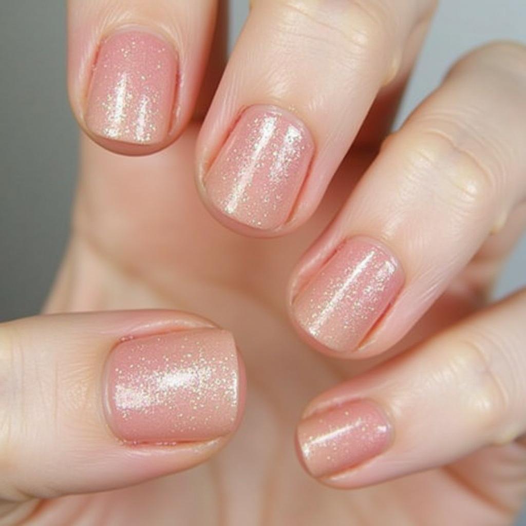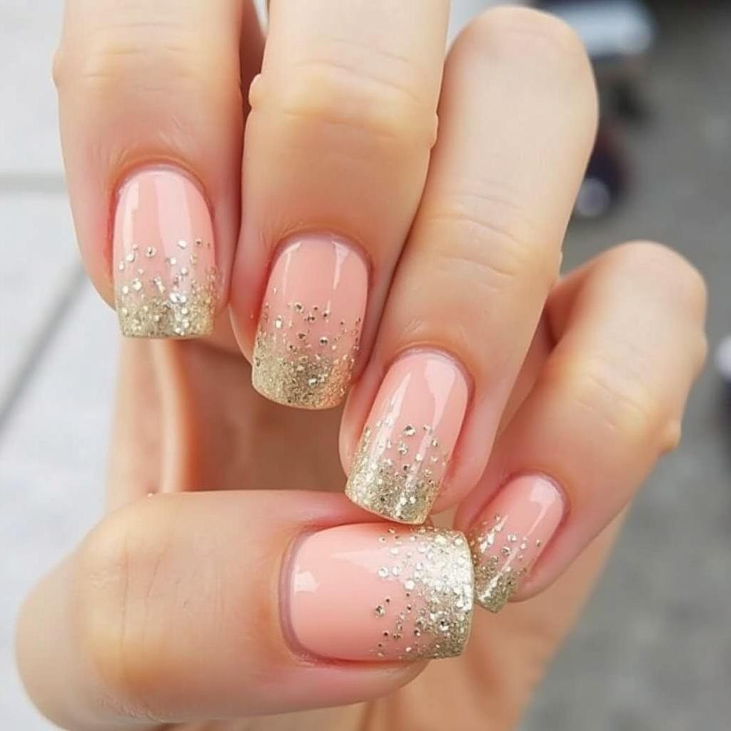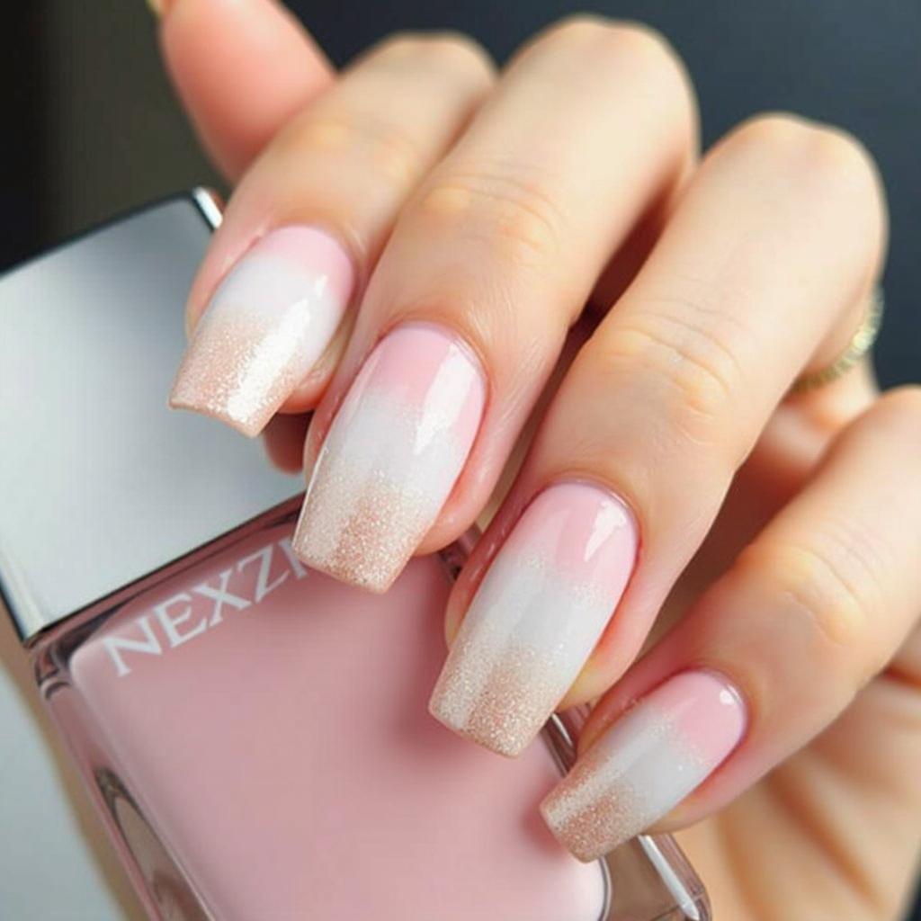 Create a soft pink base with glitter fading from the tips to the middle of the nail for a sparkling, elegant effect.