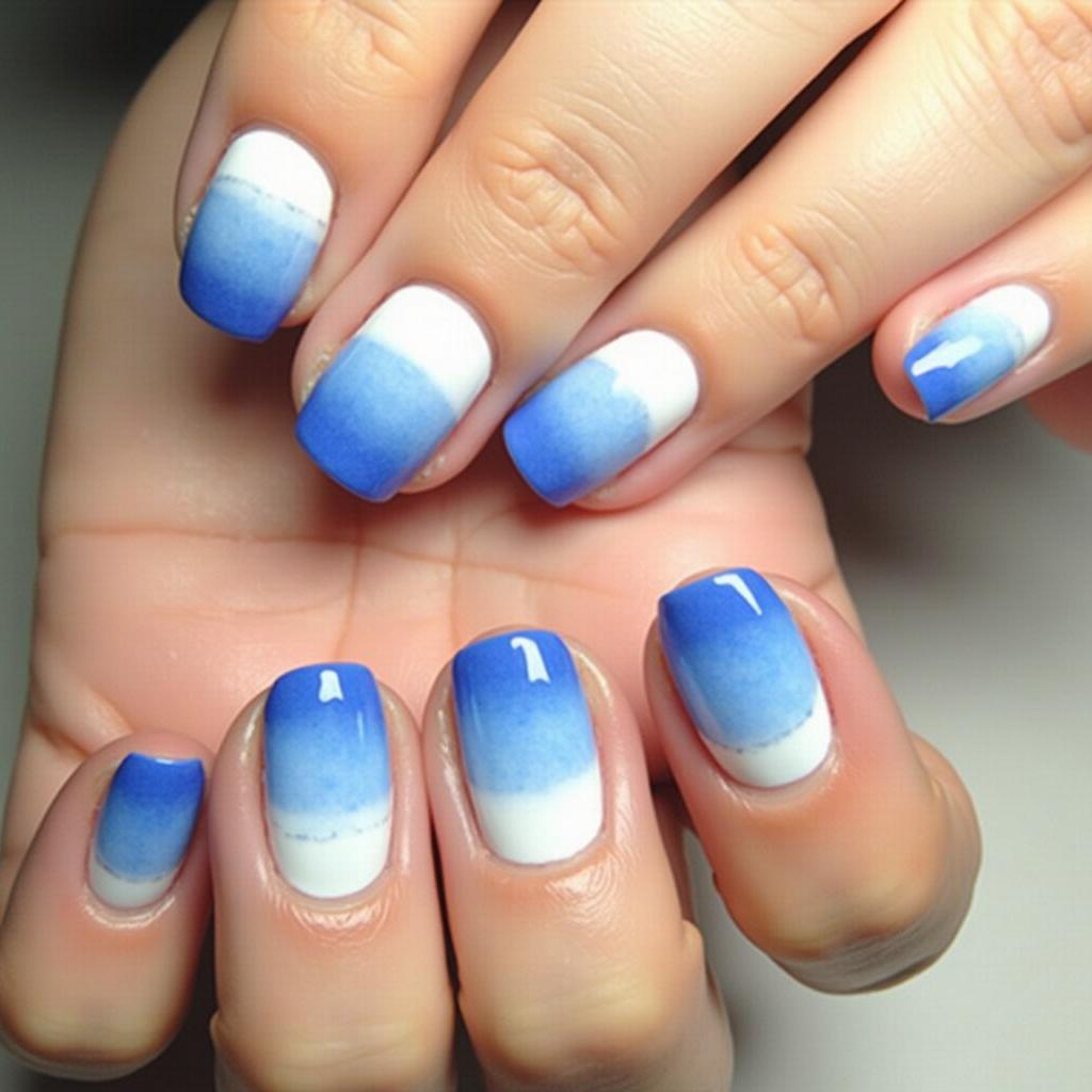 A deeper ocean blue fading into bright white creates a striking ombre design that feels both serene and refreshing.