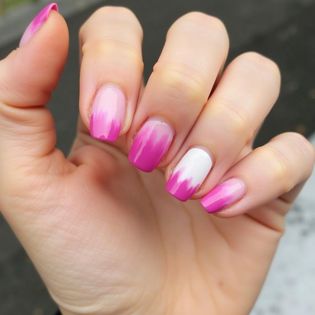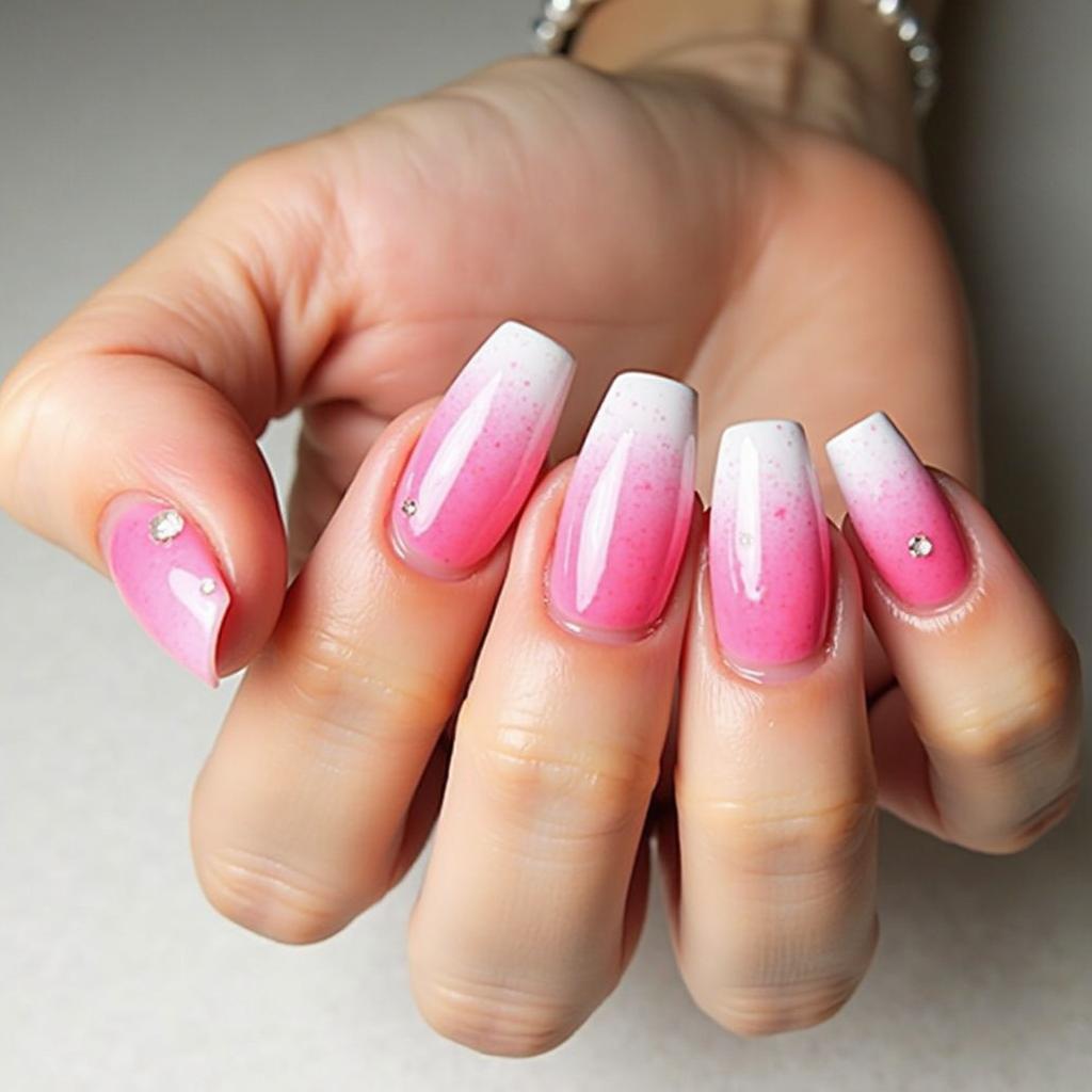 Add a pop of color with bright pink fading into white for a fresh, cheerful ombre design.