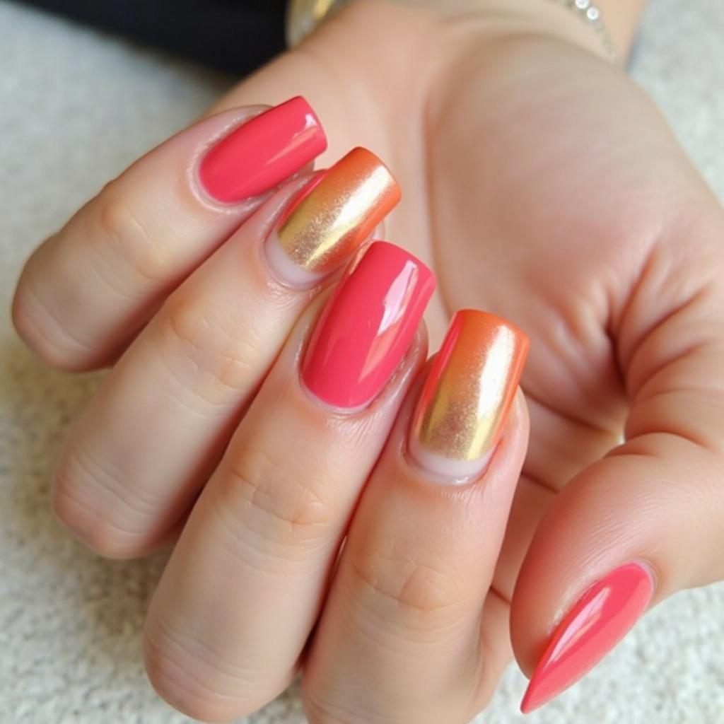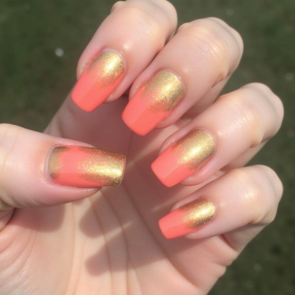 Coral and gold are rich and warm tones that combine to create a luxurious, eye-catching ombre design.