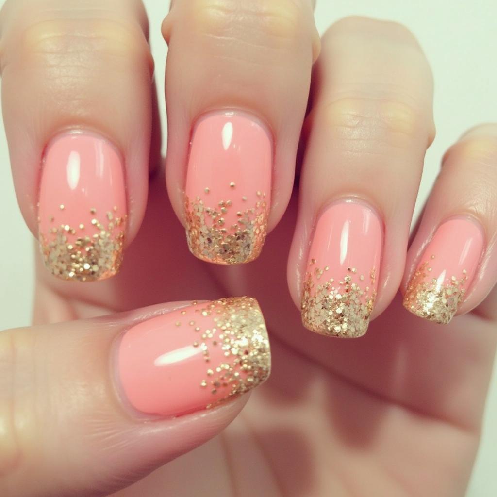 Start with coral and fade into gold glitter for a bright, bold, and glamorous ombre design.