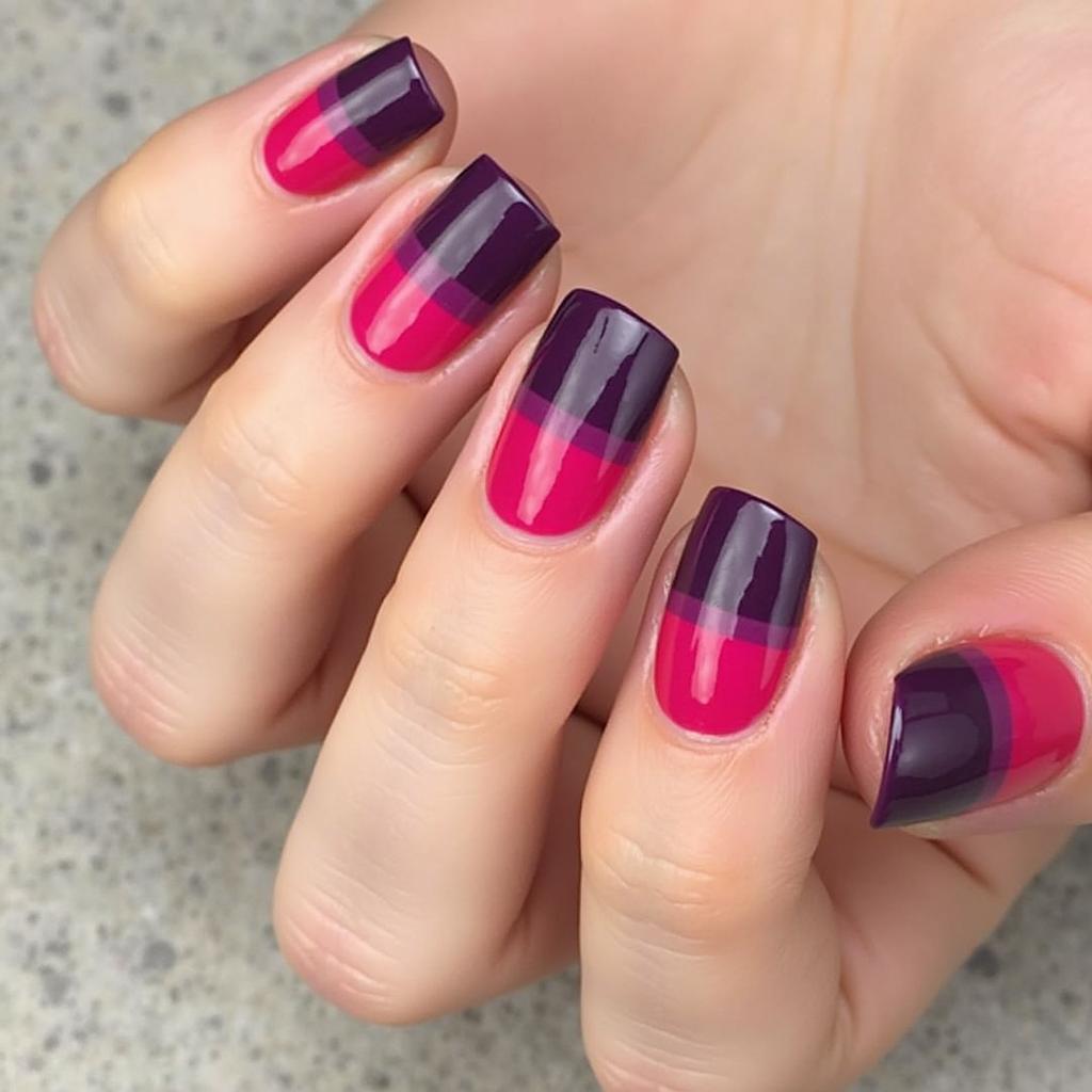 For a more dramatic effect, go from dark purple to bright pink for a bold ombre gradient that makes a statement.