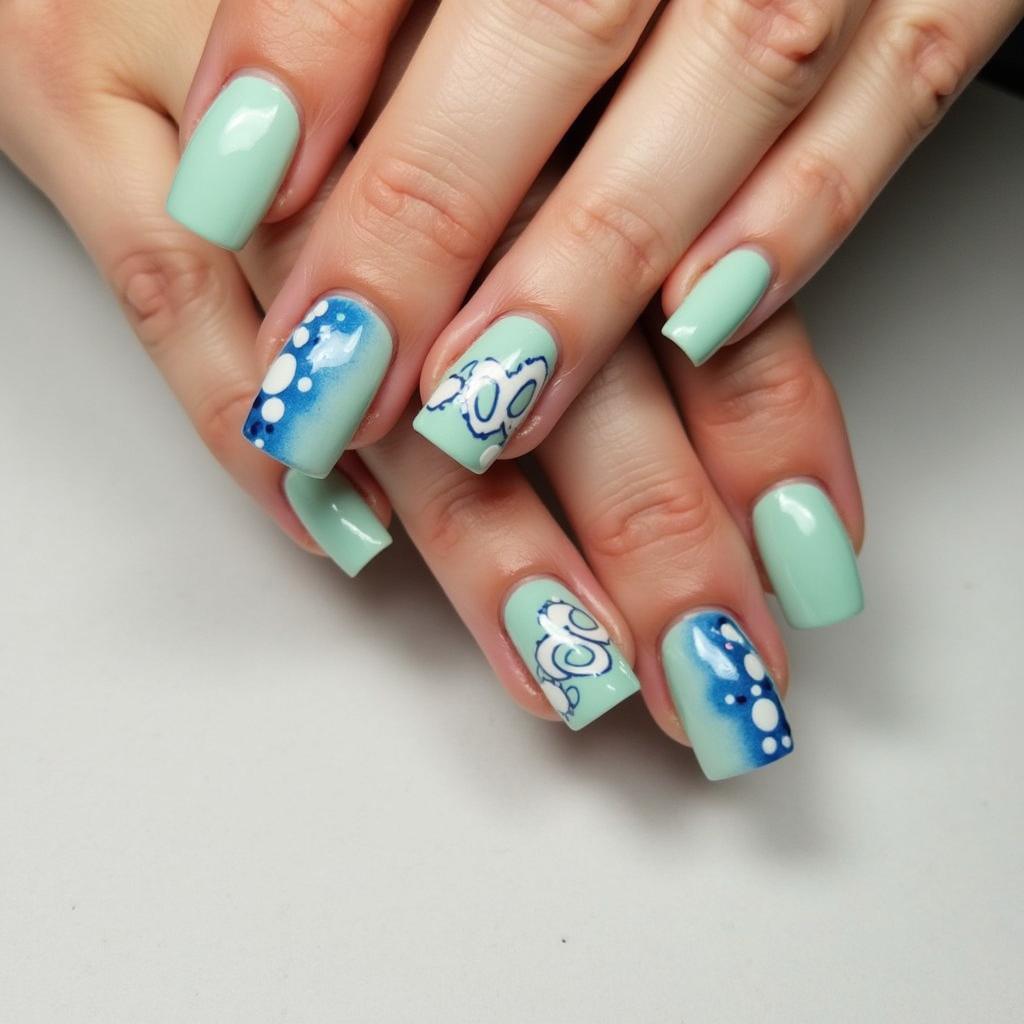 Start with mint green and fade into aqua blue for a fresh, cool ombre effect that captures the spring vibe.