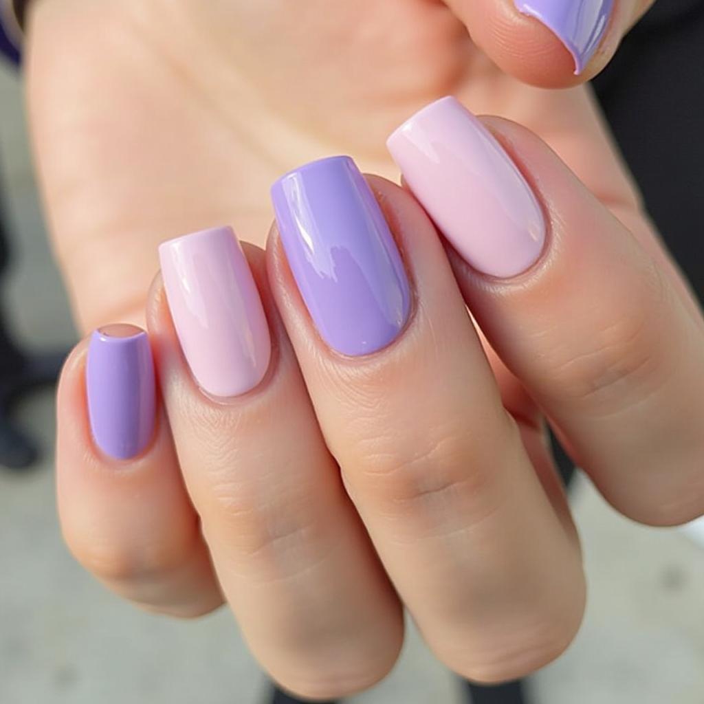 Start with a pale lavender and transition smoothly into soft pink for a feminine, romantic design.