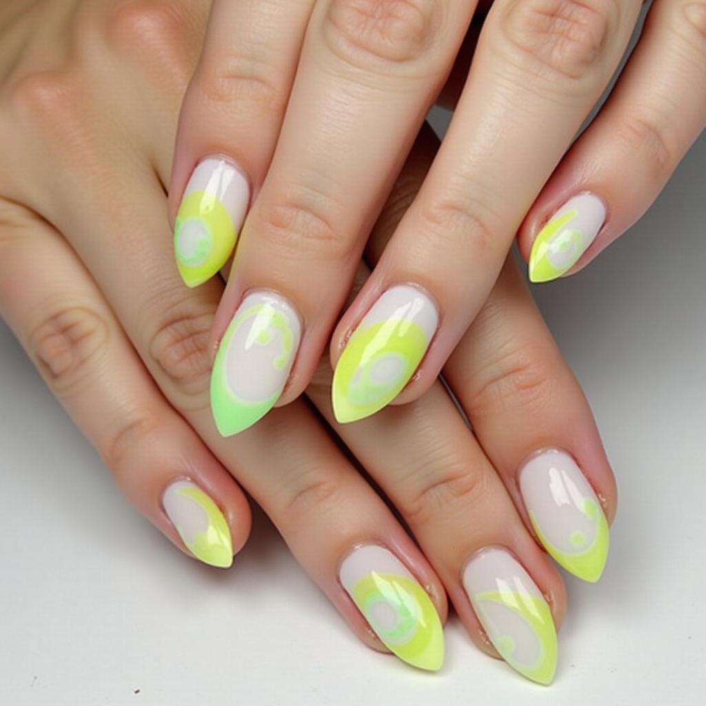 Create a neon green ombre that fades into white tips for a modern, energetic look that captures the essence of spring.