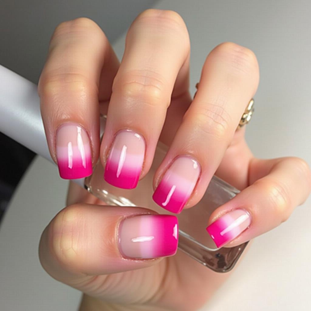 For a bit more pop, start with nude and fade into a bright pink for a fresh, modern ombre design.
