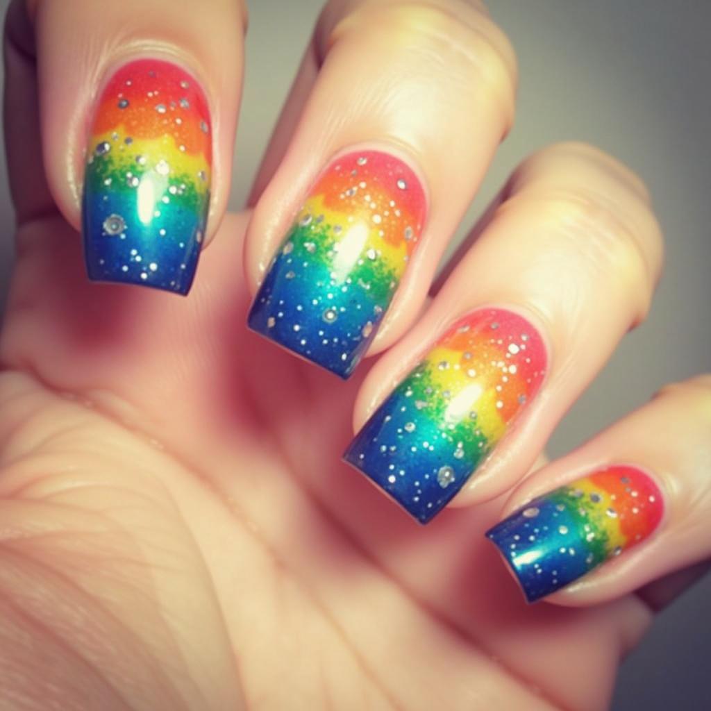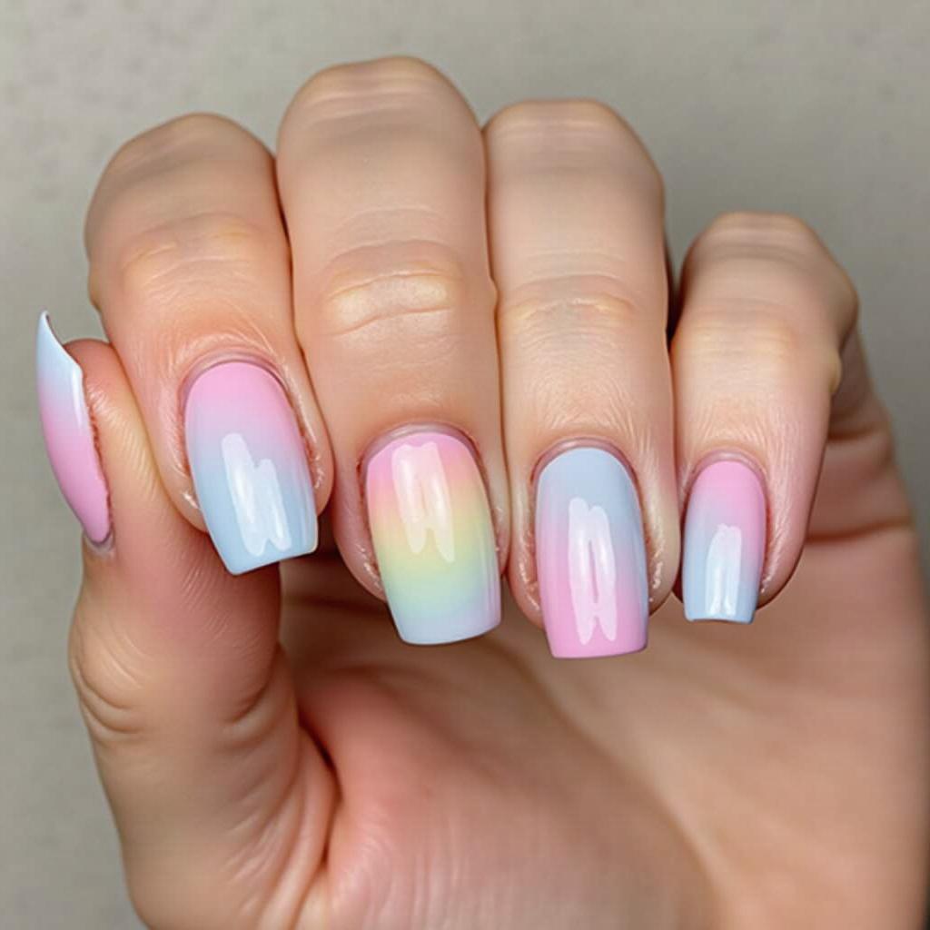 Blend pastel shades like baby blue, pink, lavender, and mint into a smooth gradient for a soft rainbow effect.