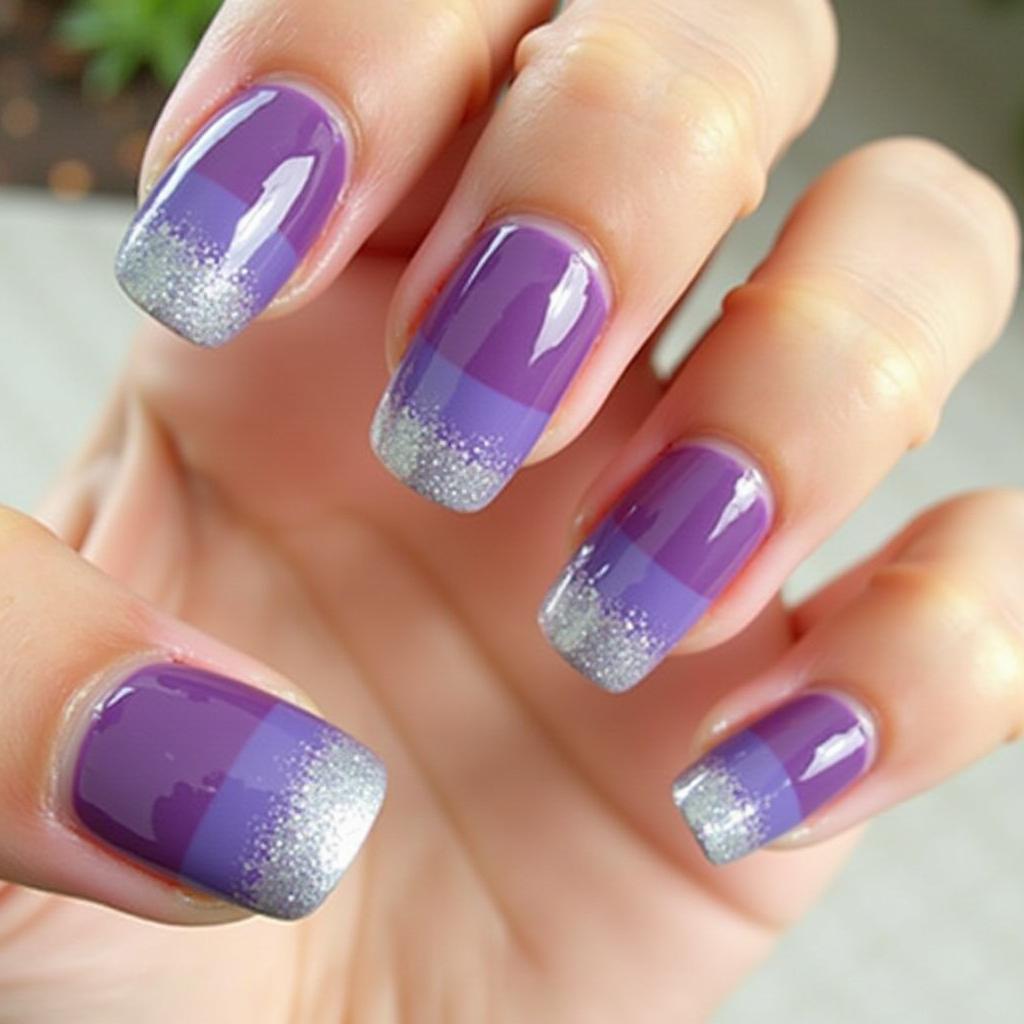 Go for a deep purple fading into silver glitter for a glamorous ombre design that adds a touch of sparkle.