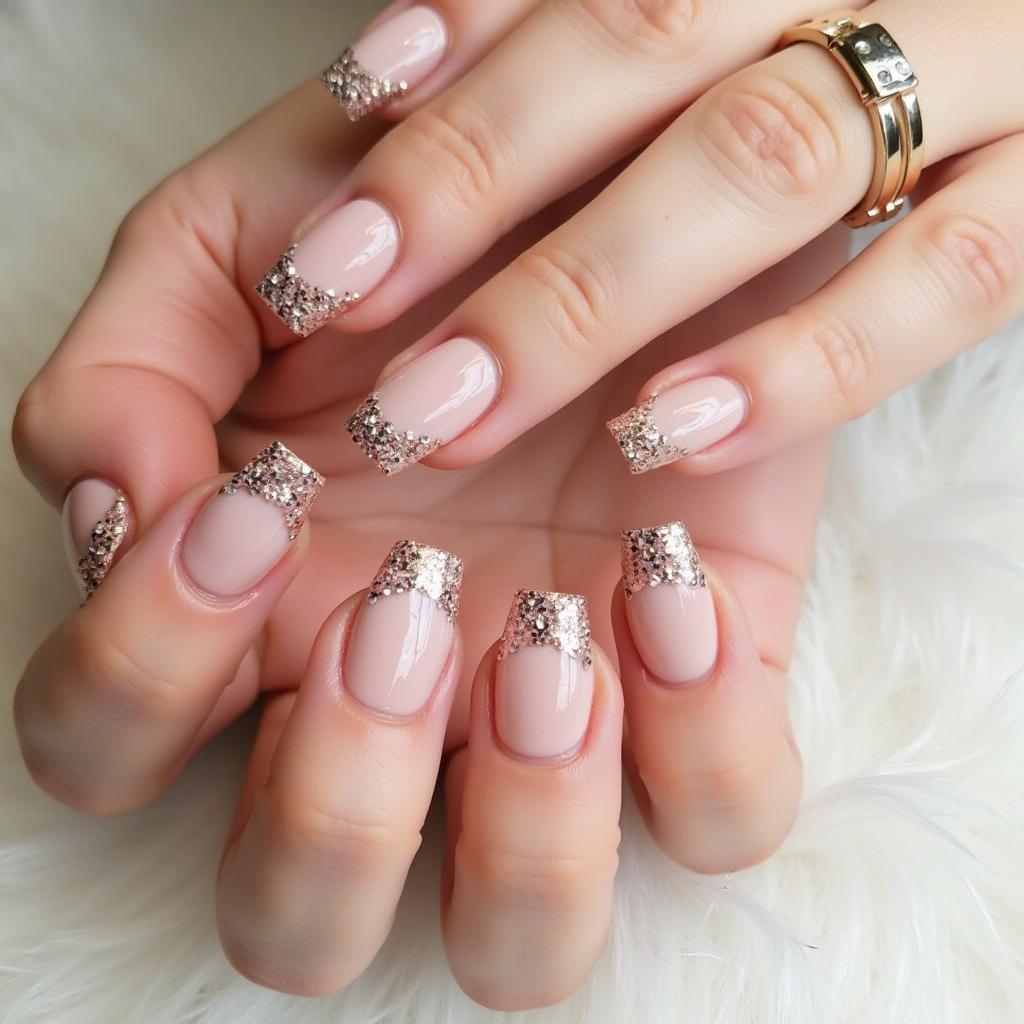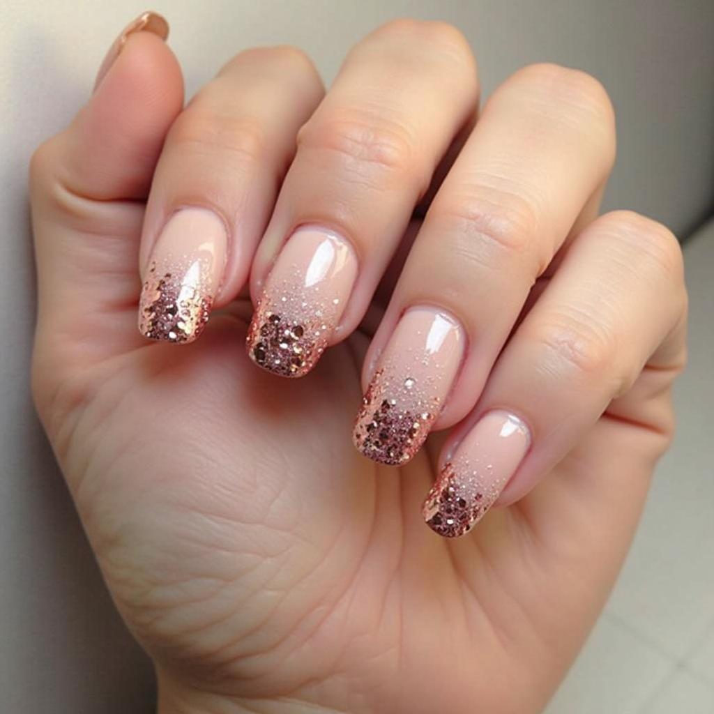 Add rose gold glitter to the tips of your nails for an elegant, sparkling ombre effect.