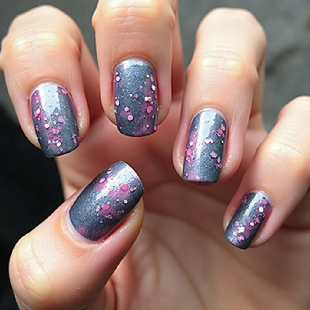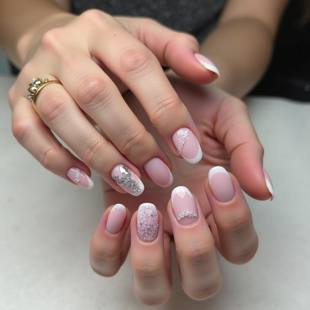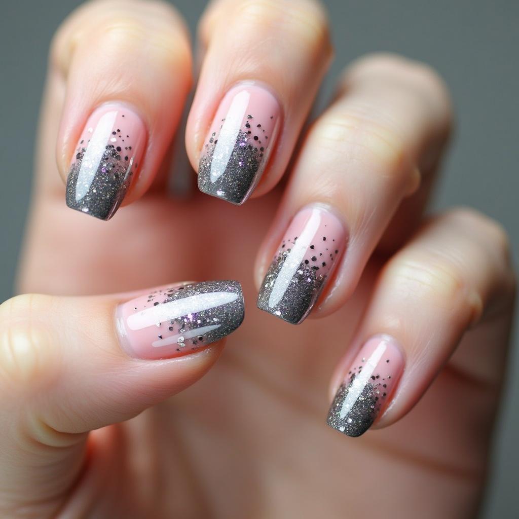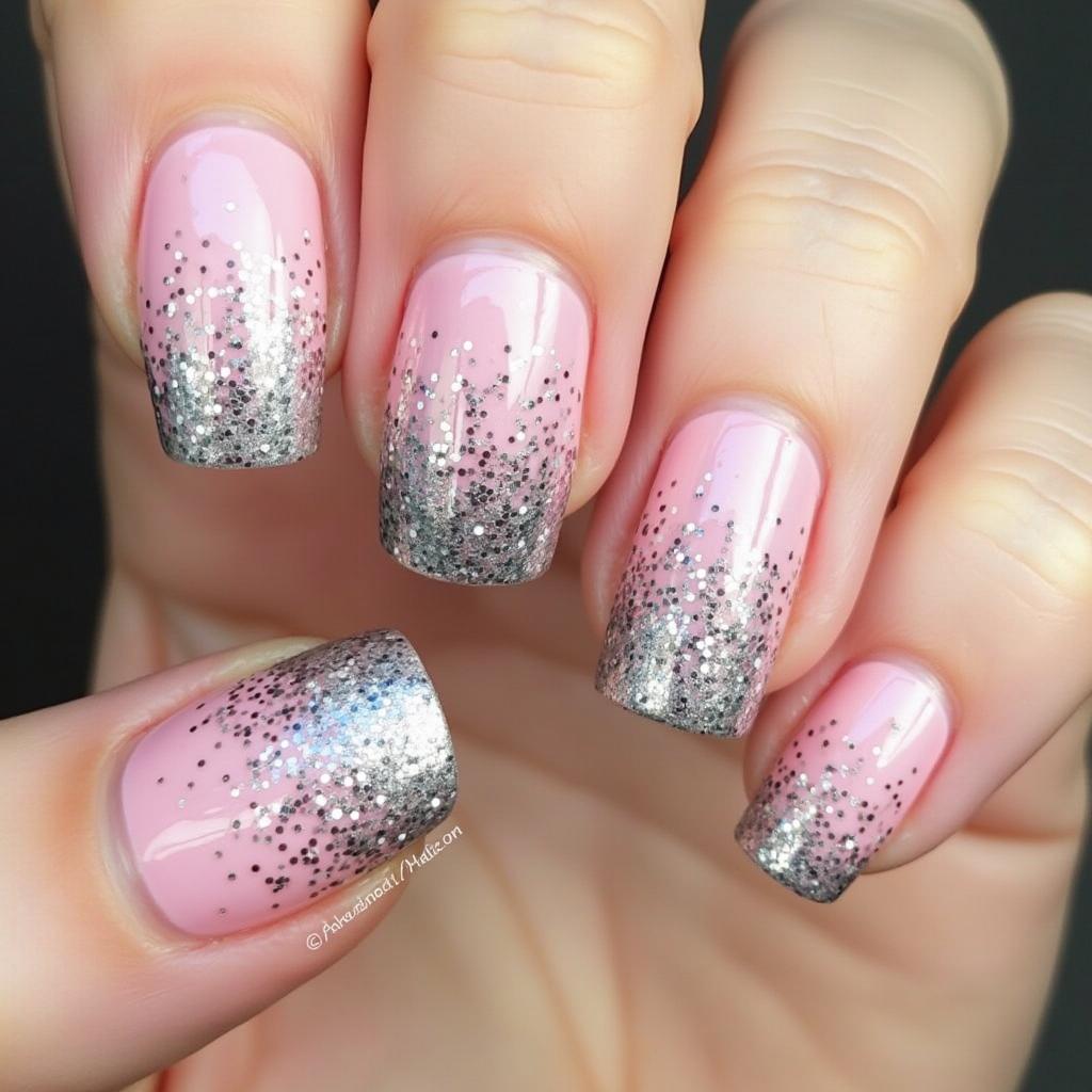 Start with a soft pink base and fade into a dazzling silver glitter at the tips for a fun yet sophisticated look.
