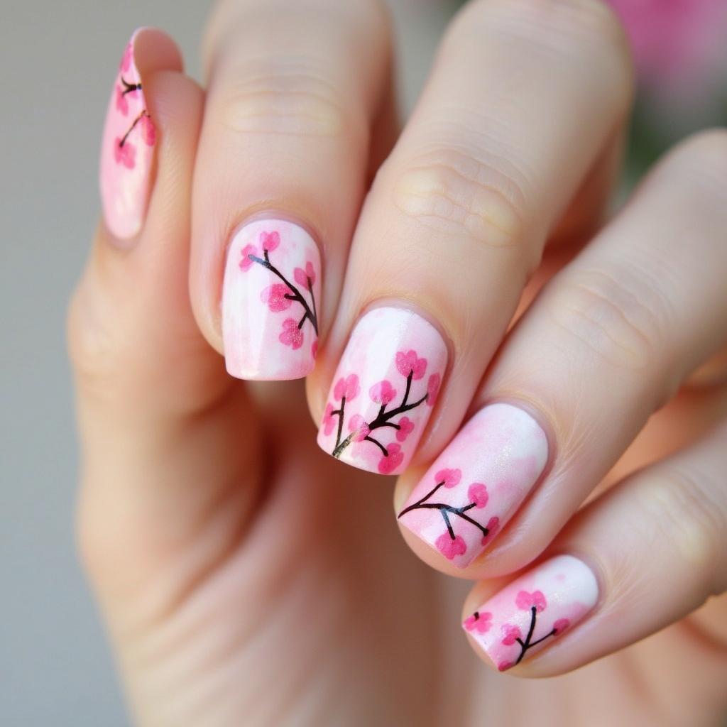 Cherry blossoms are synonymous with spring, making them an ideal design for your spring manicure.