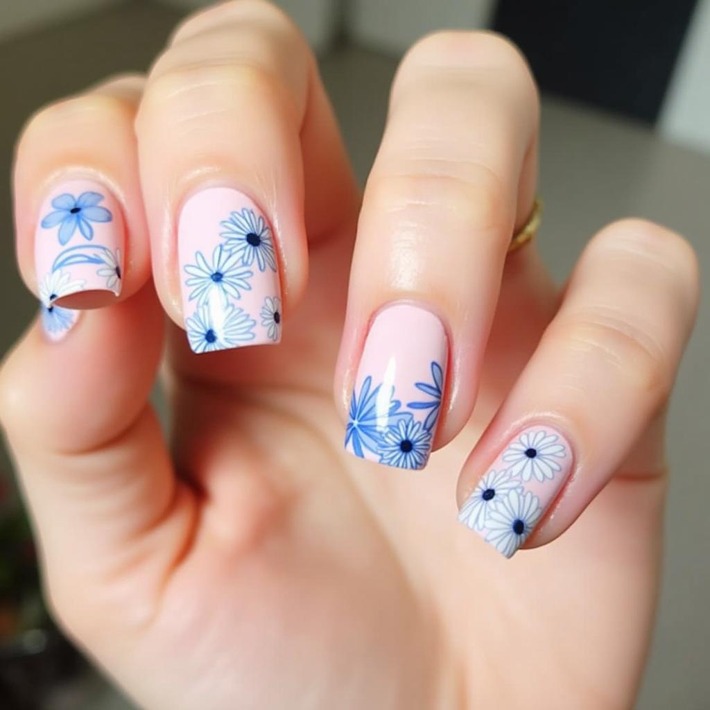 Daisies are the quintessential spring flower, and small, hand-painted daisy designs on a nude or pastel base look absolutely charming.