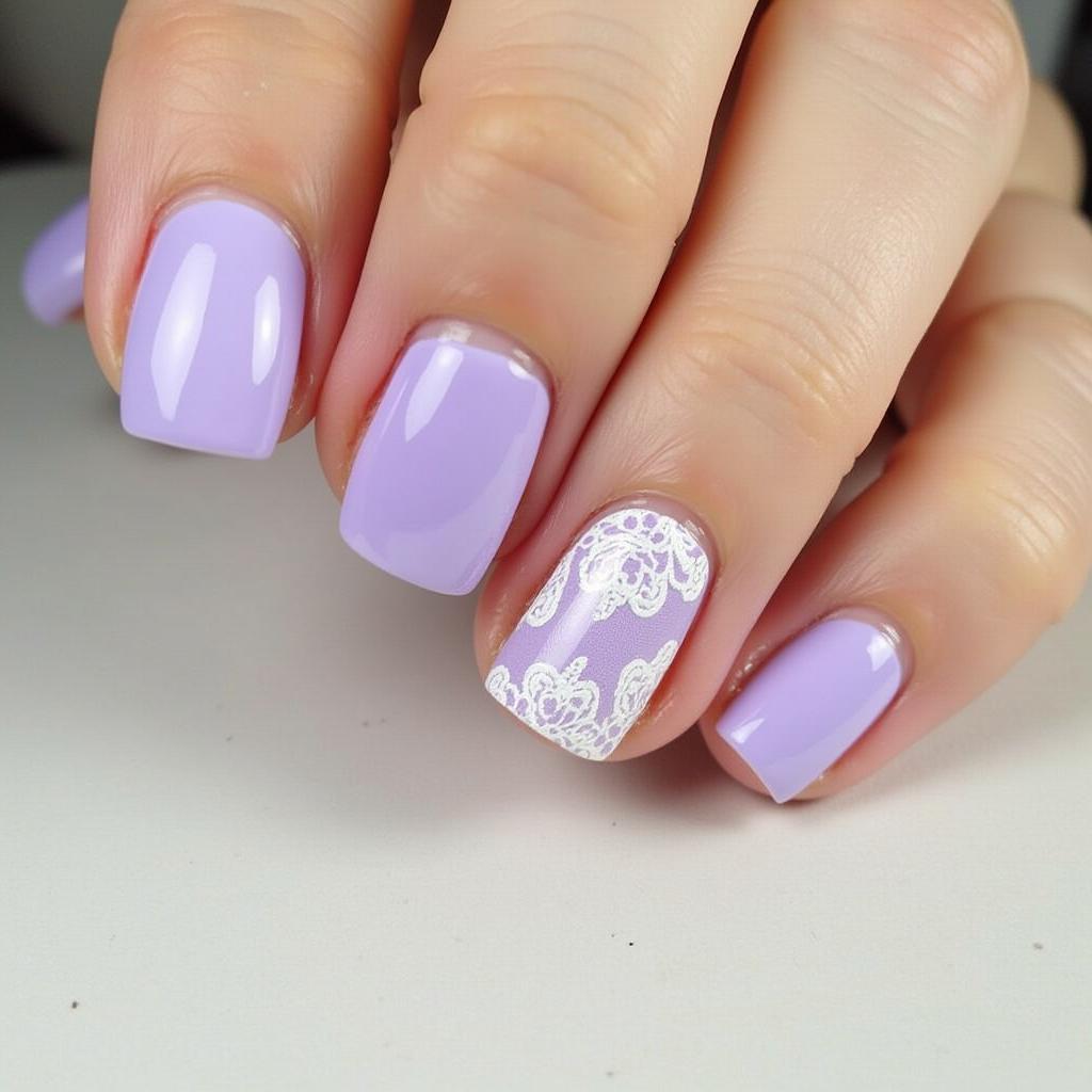 Add delicate white lace designs to your lavender nails for a feminine and romantic touch.