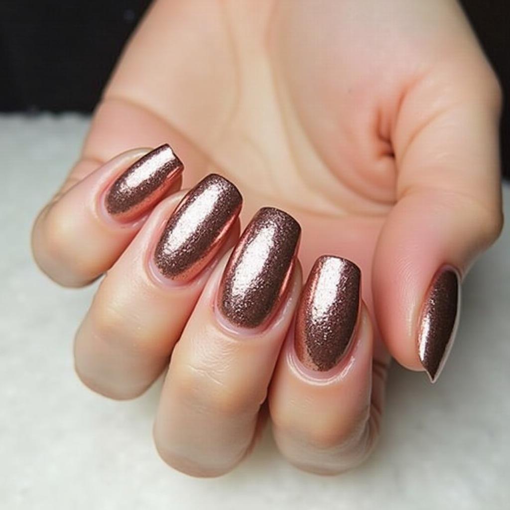 Opt for a metallic rose gold manicure for a chic, high-shine design that still feels light and airy.