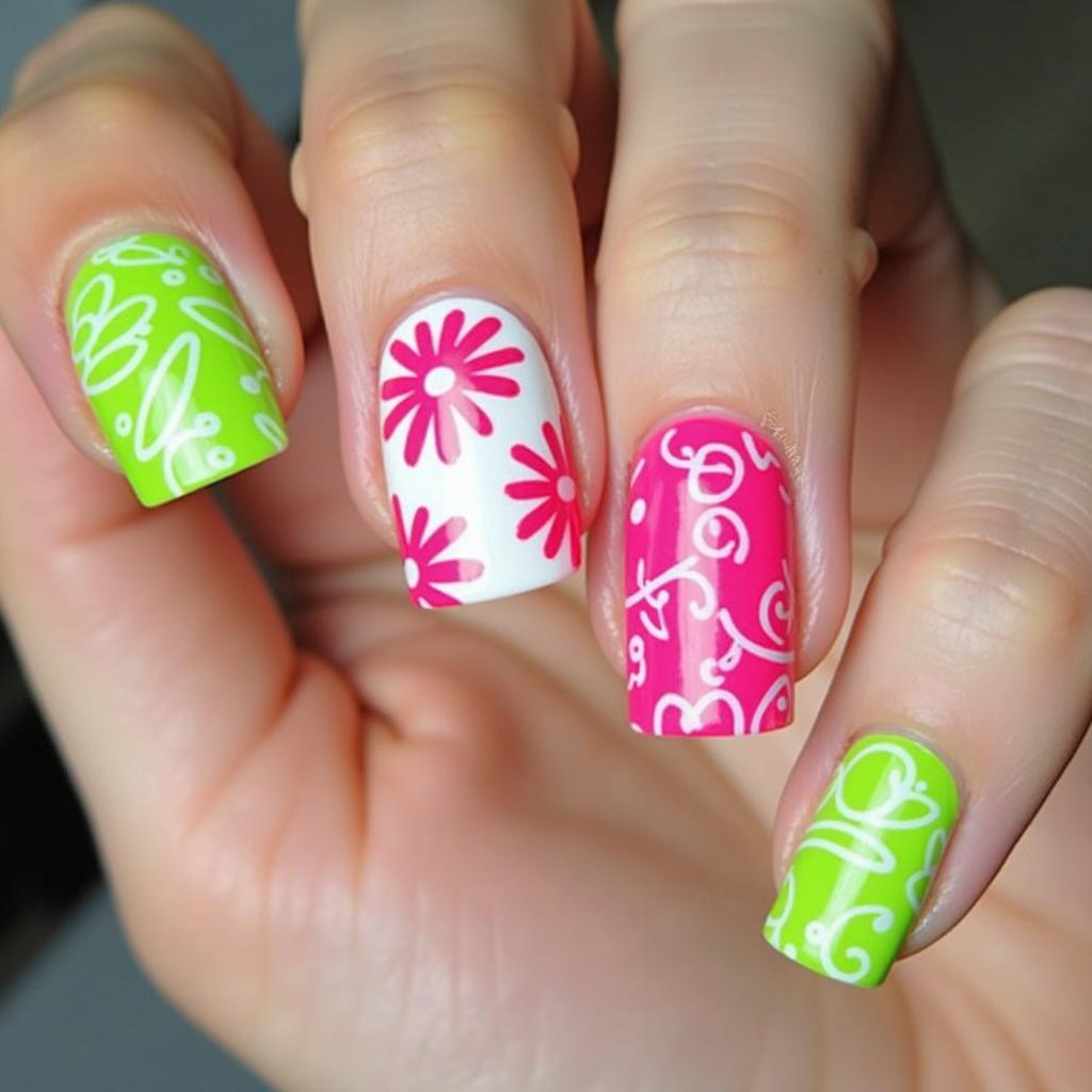 16. Neon Floral Nails