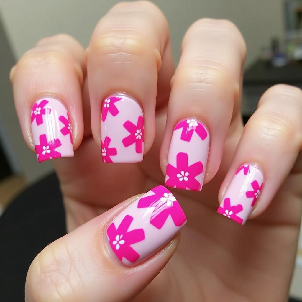 Create bright, neon pink flowers against a soft white or pastel background for a lively and colorful design.
