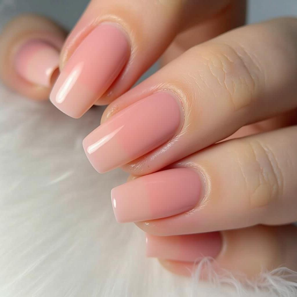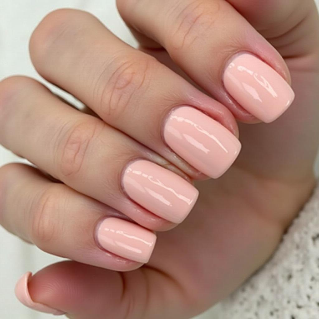 For an effortlessly chic look, opt for a solid peachy pink manicure that’s both soft and stylish.