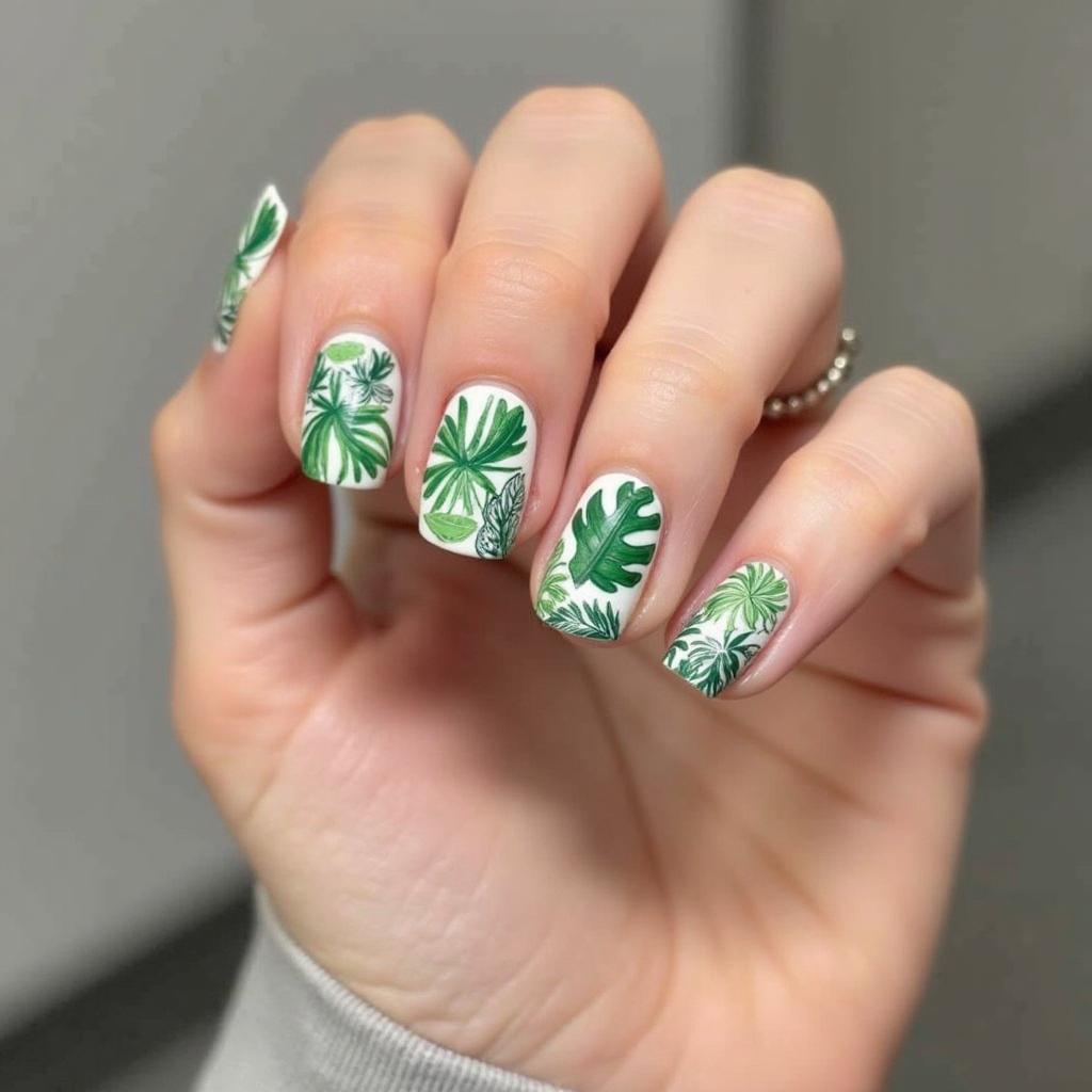 14. Tropical Leaf Nails