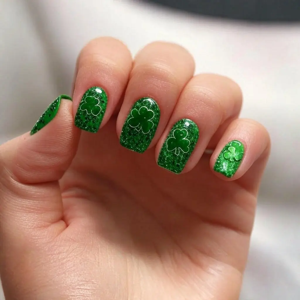 18. Glitter Shamrock Nails