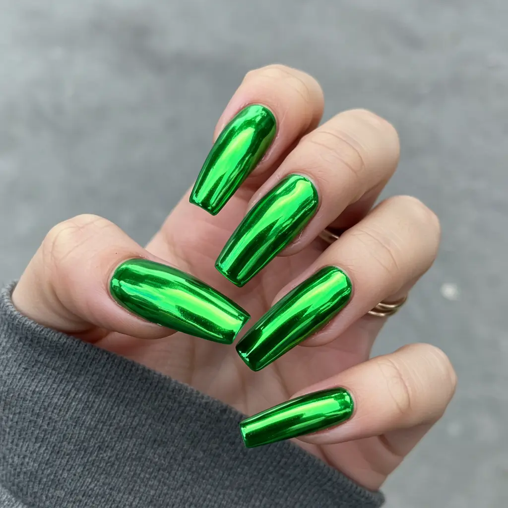 17. Chrome Green Nails