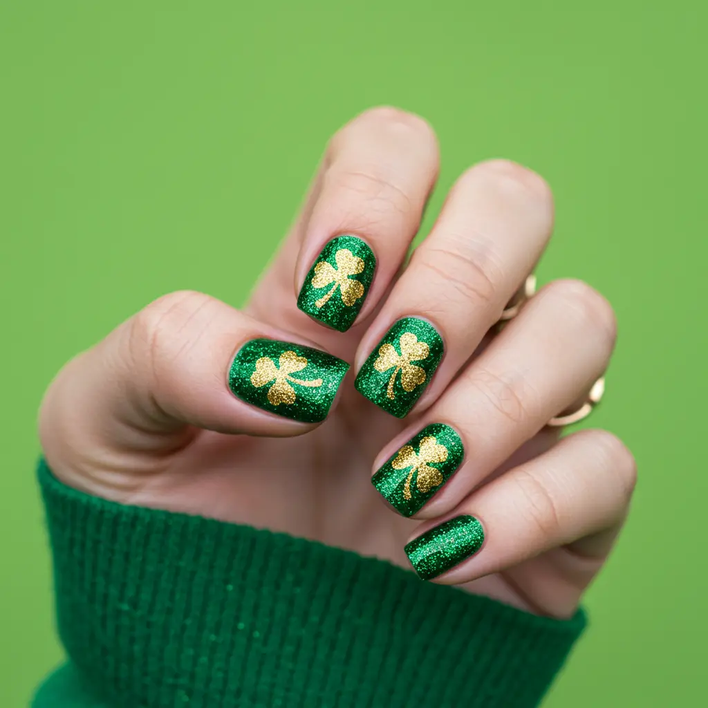 18. Glitter Shamrock Nails