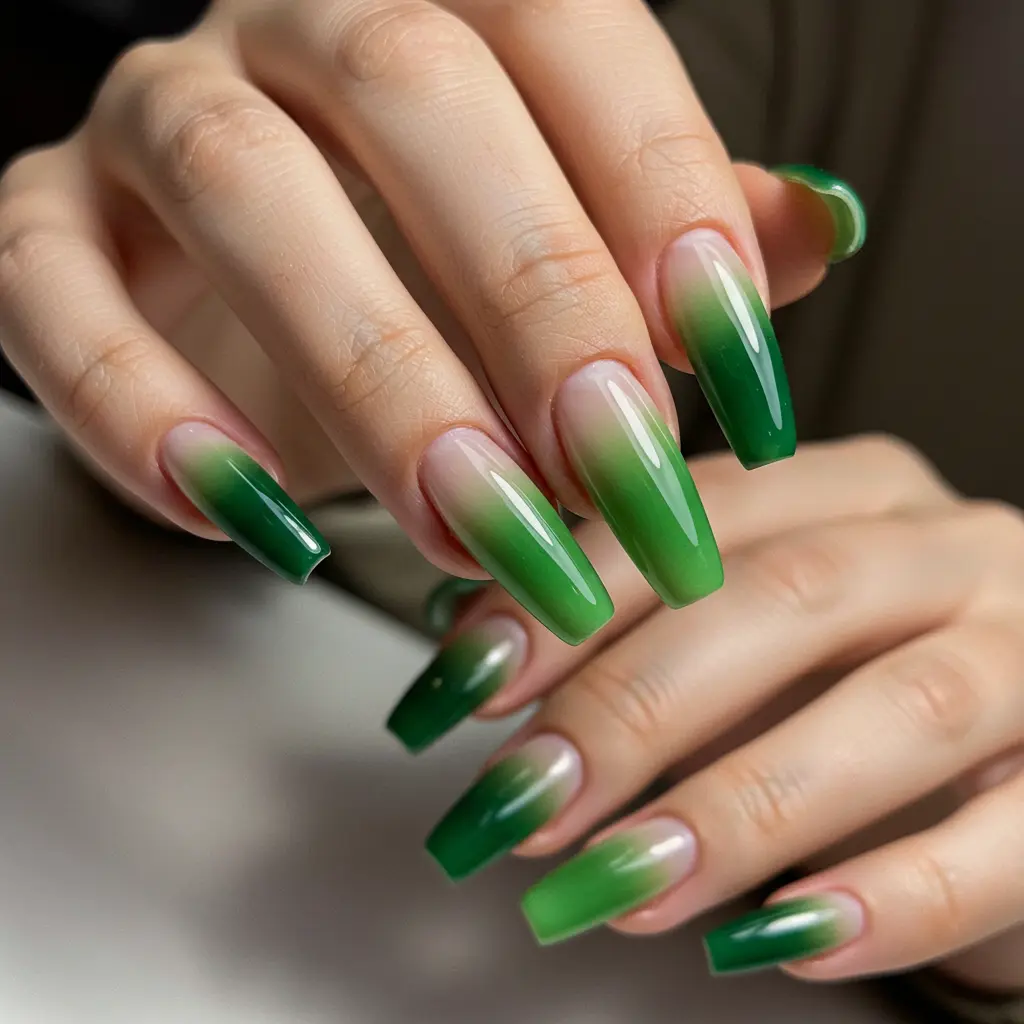 14. Green Ombre Nails