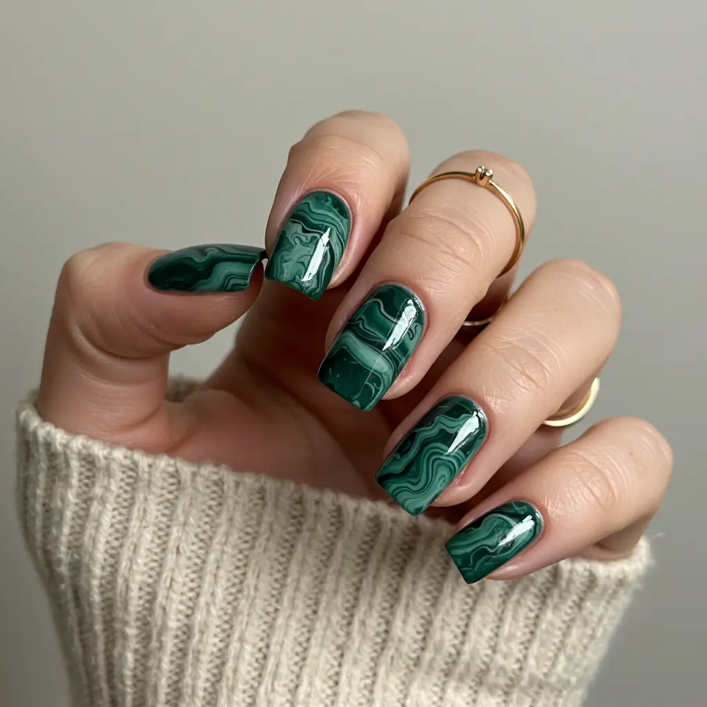 8. Marble Green Nails