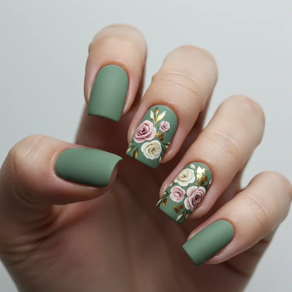 9. Matte Green Nails