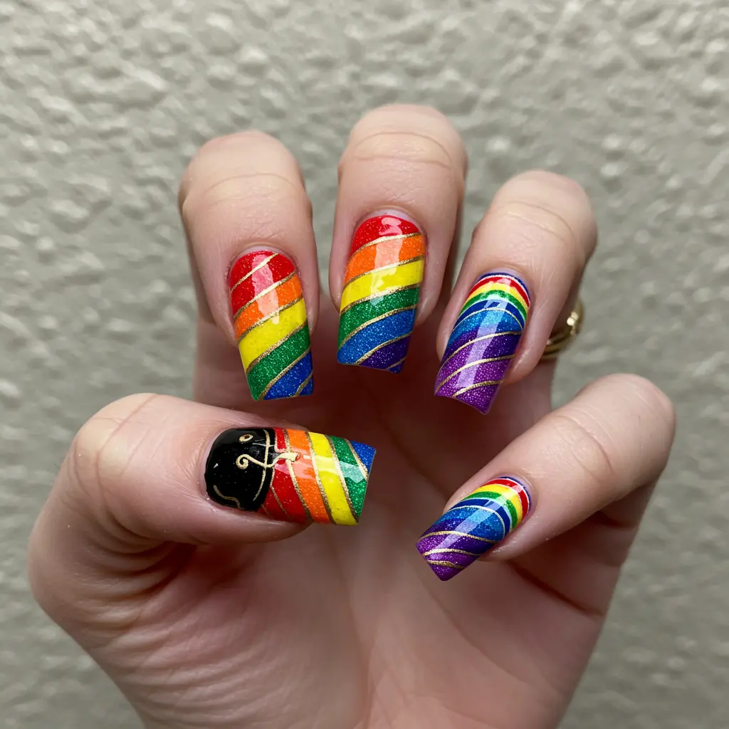 4. Rainbow and Pot of Gold Nails