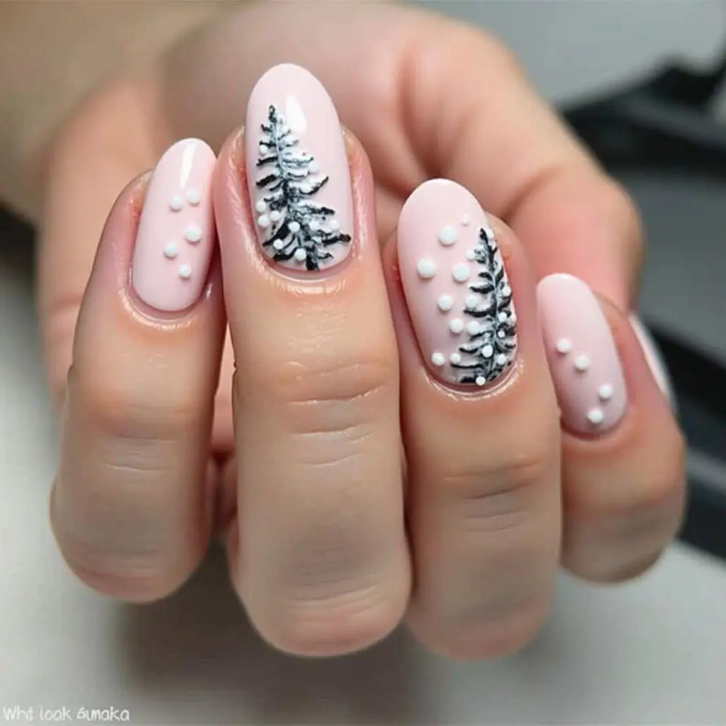 For a nature-inspired look, create a forest of evergreen trees across your nails. Pair with a rich green or deep red base for a rustic yet chic design that celebrates the beauty of winter landscapes.