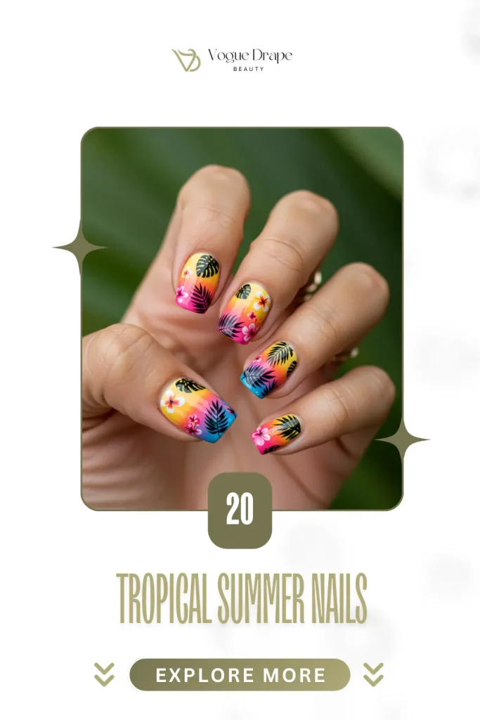 Nothing says “vacation vibes” like tropical-inspired nails. Whether you’re lounging by the beach or just dreaming of a getaway, these 20 tropical summer nail designs will transport you to paradise. From bright colors to palm trees and exotic fruits, here are the best tropical nail designs to make you feel like you’re always on vacation.