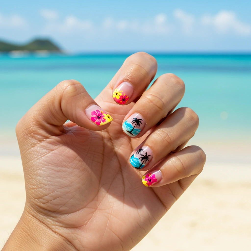 Hibiscus flowers are a tropical classic that bring warmth and vibrancy to any nail design.