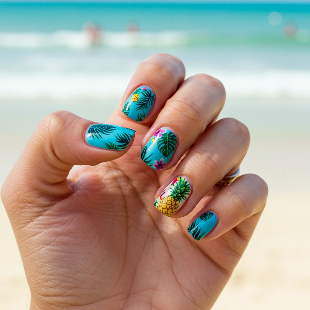 Tropical marine life like fish, coral, and sea creatures can give your nails an oceanic vibe.