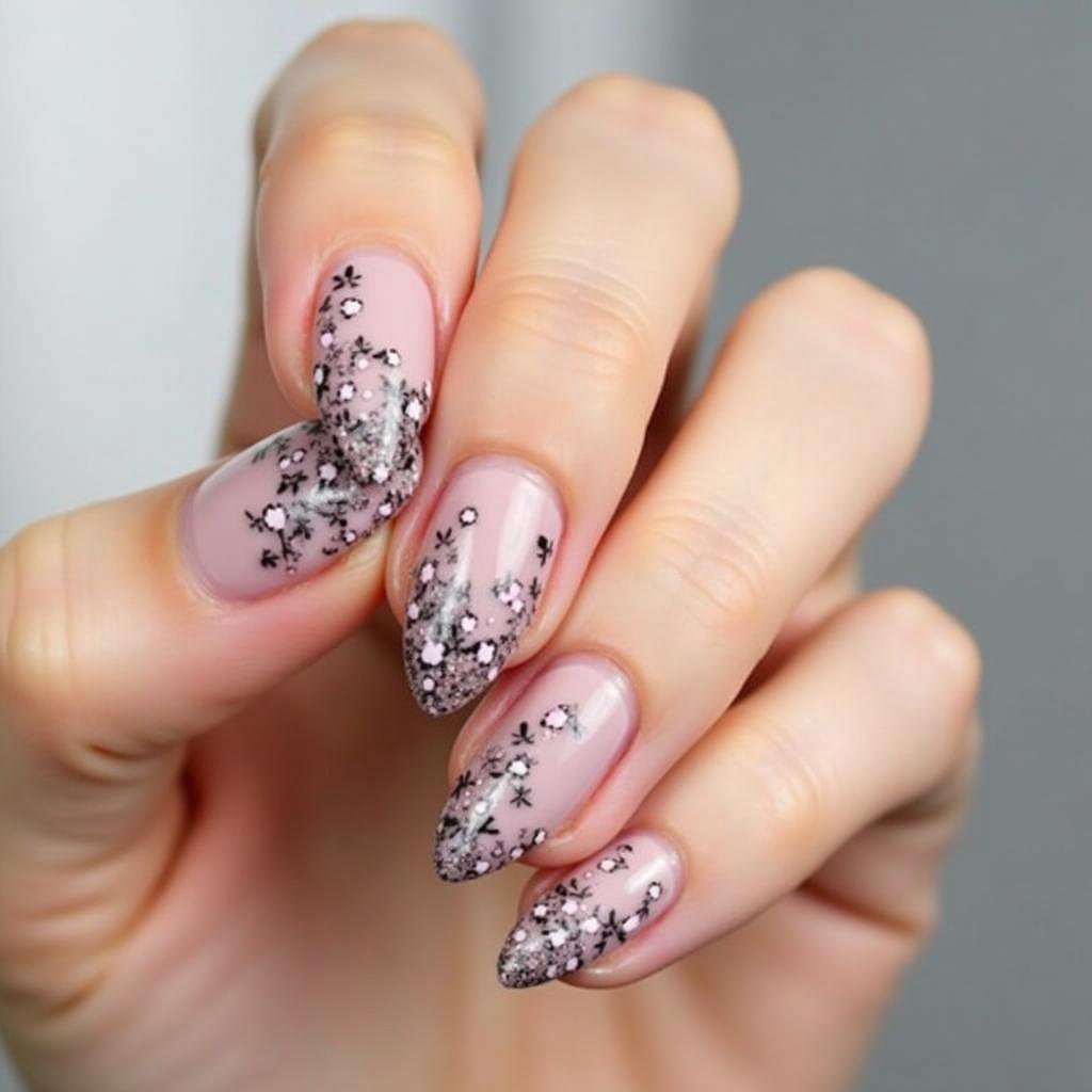 Add delicate silver leaf accents to a nude base for a refined, timeless look.