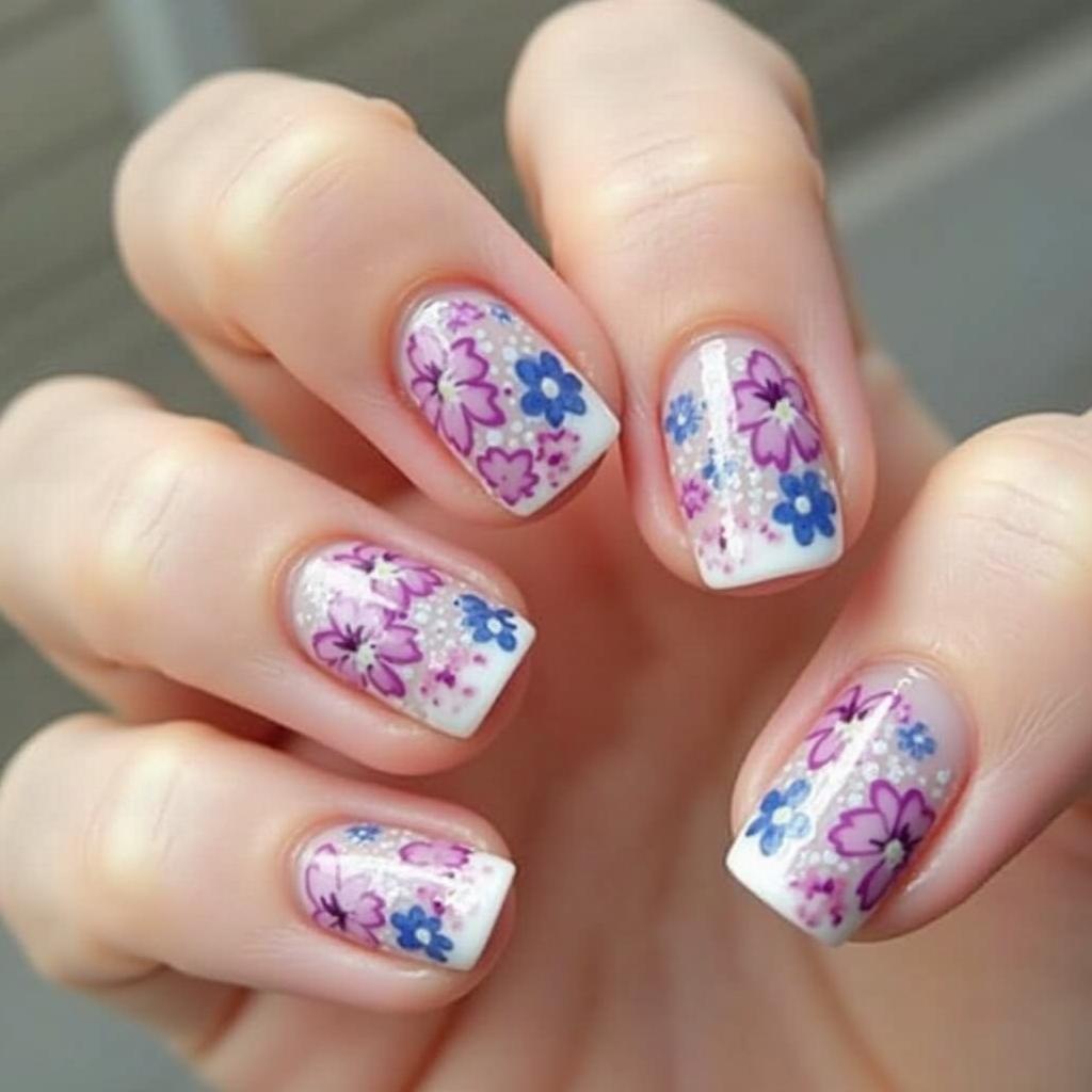 For a more delicate touch, create a watercolor design using shades of lavender and purple, adding tiny white flowers for a subtle effect.