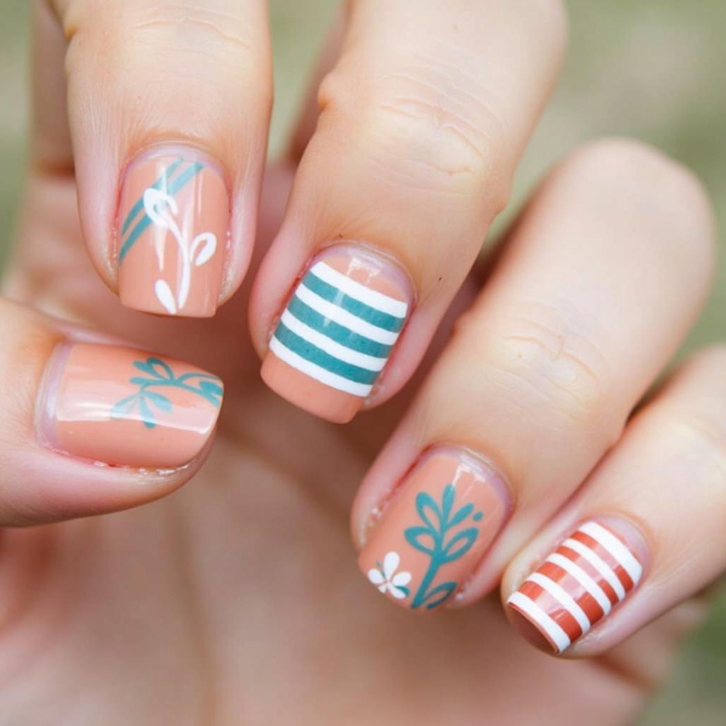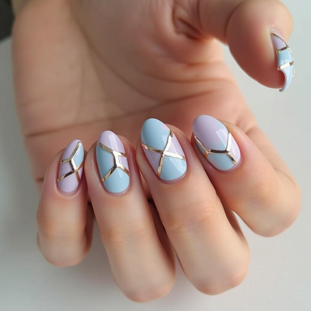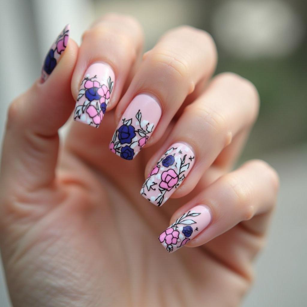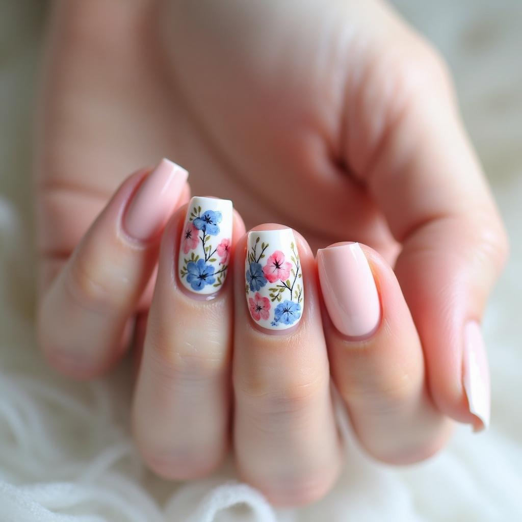 Blend soft pinks and blues for a watercolor effect and add small flower designs for a gentle, elegant spring look.