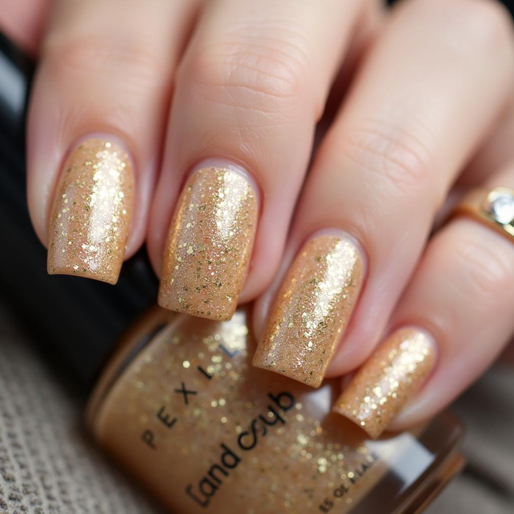 A nude base paired with delicate gold leaf accents adds a sophisticated, nature-inspired look.